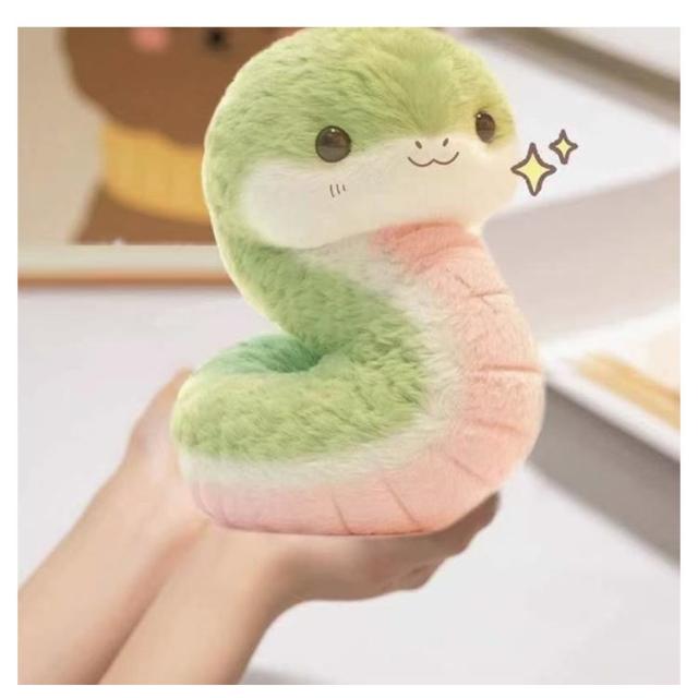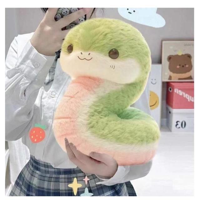 | 可愛らしいデザインのヘビのぬいぐるみです。 ふわふわの肌触りが気持ちいい♪ | |