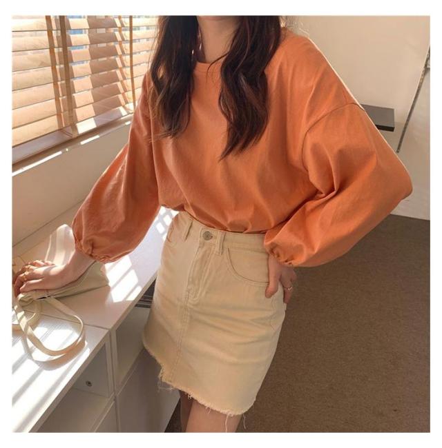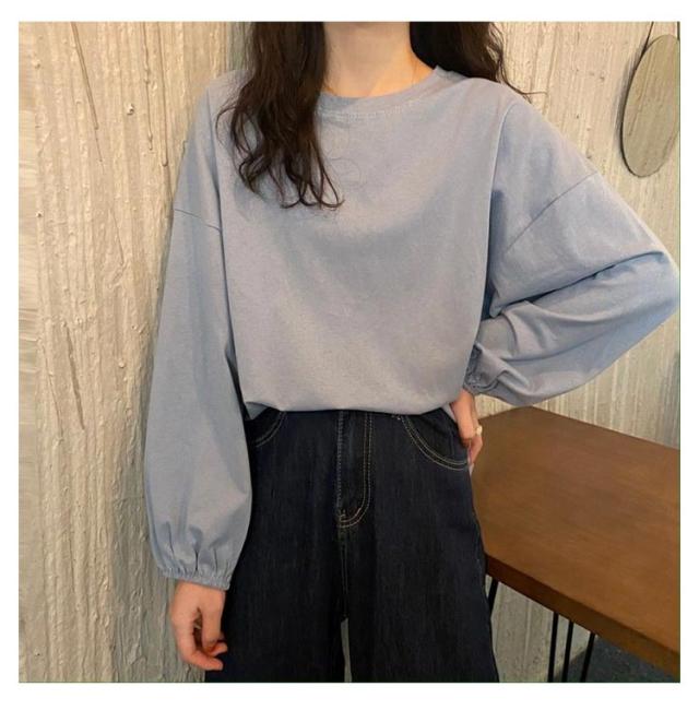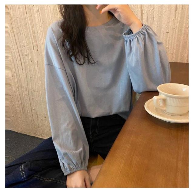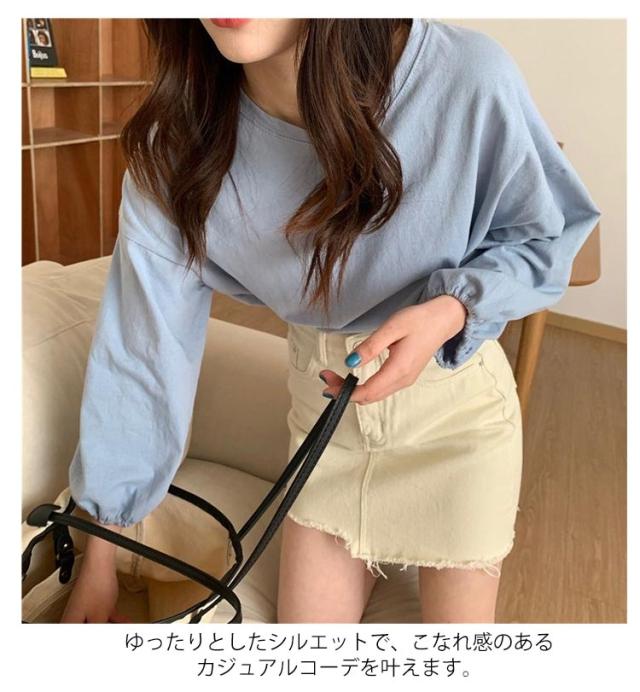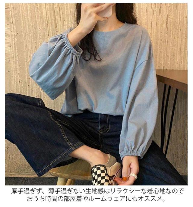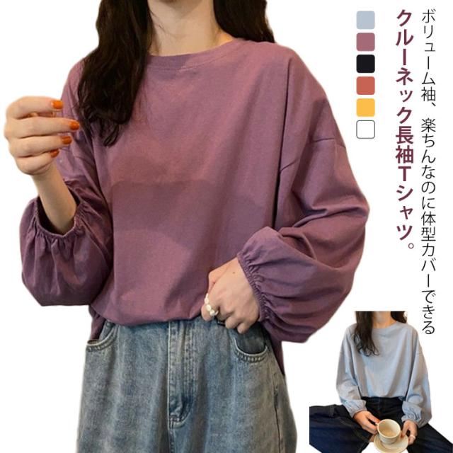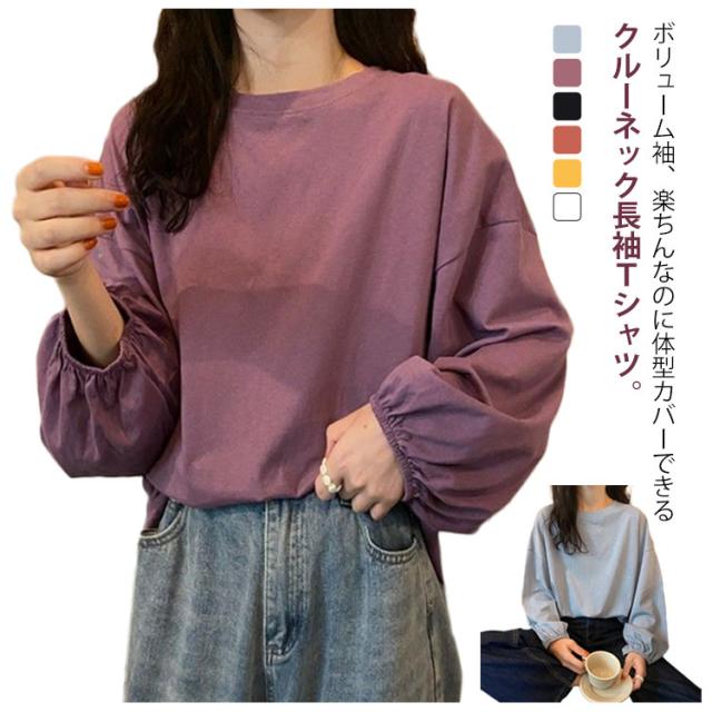 Tシャツ レディース クルーネック おしゃれ トップス カットソー 長袖Tシャツ カジュアル シンプル 大人かわいい 丸首 長袖 トップス インナー 重ね着 パフスリーブ ゆったり 長袖Tシャツ きれいめ プルオーバー 部屋着 春夏