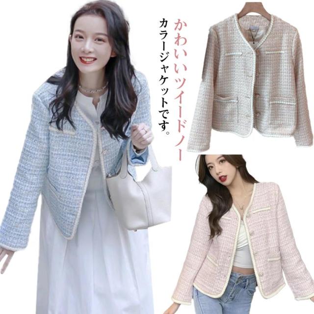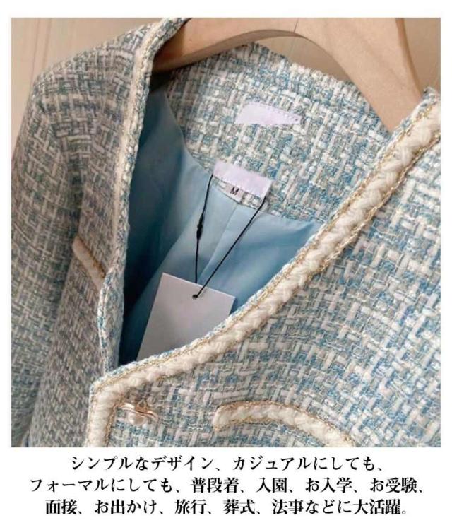 ノーカラーツイードジャケット ジャケット ノーカラーツイードジャケット ノーカラージャケット フォーマル 春秋 通勤 ライトアウター 大きいサイズ オフィス スーツ 入学式 通勤 入園式 卒園式 七五三