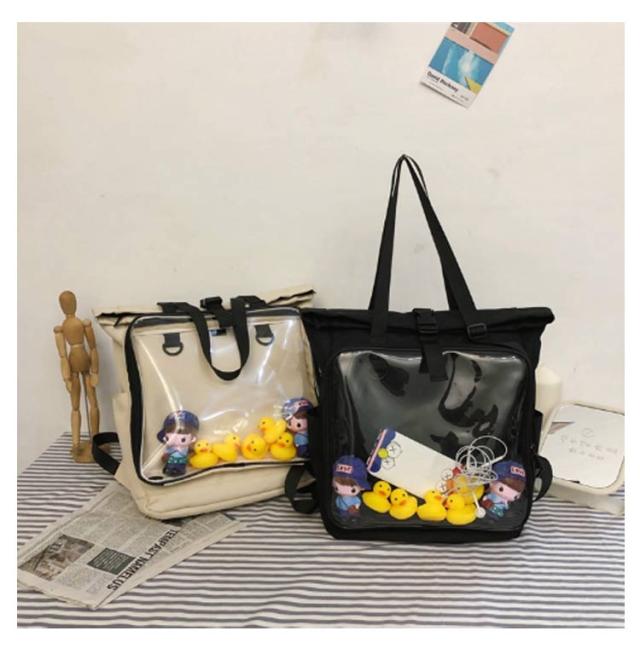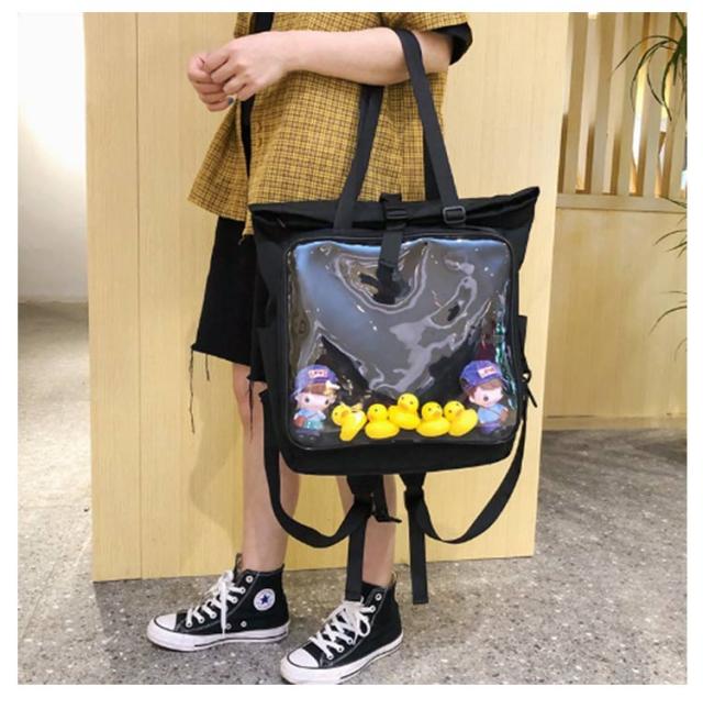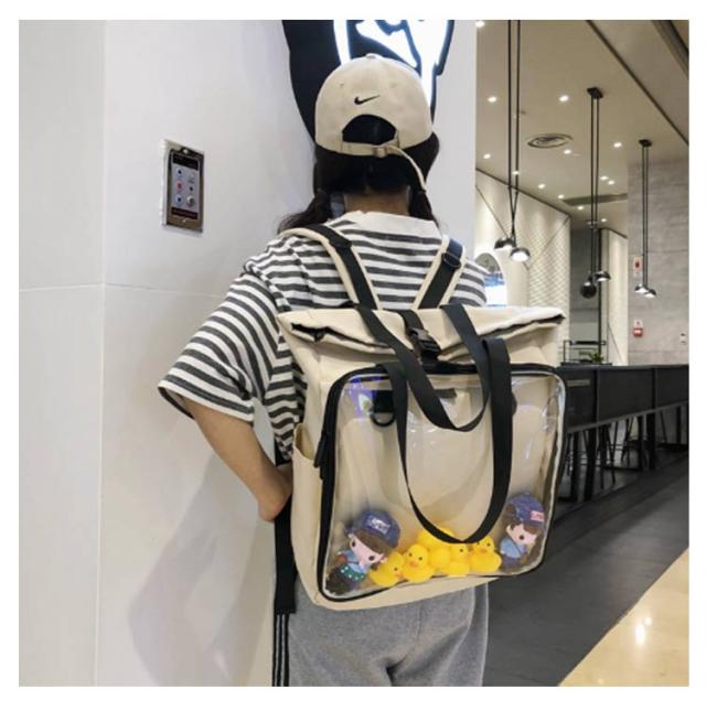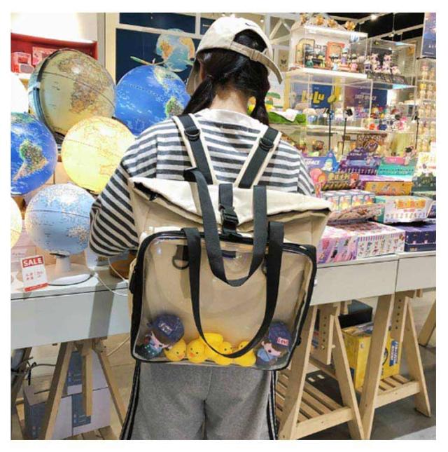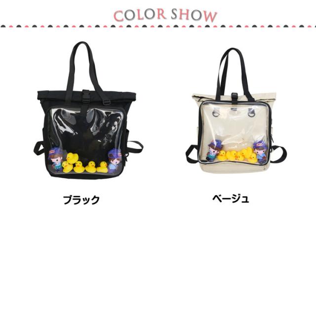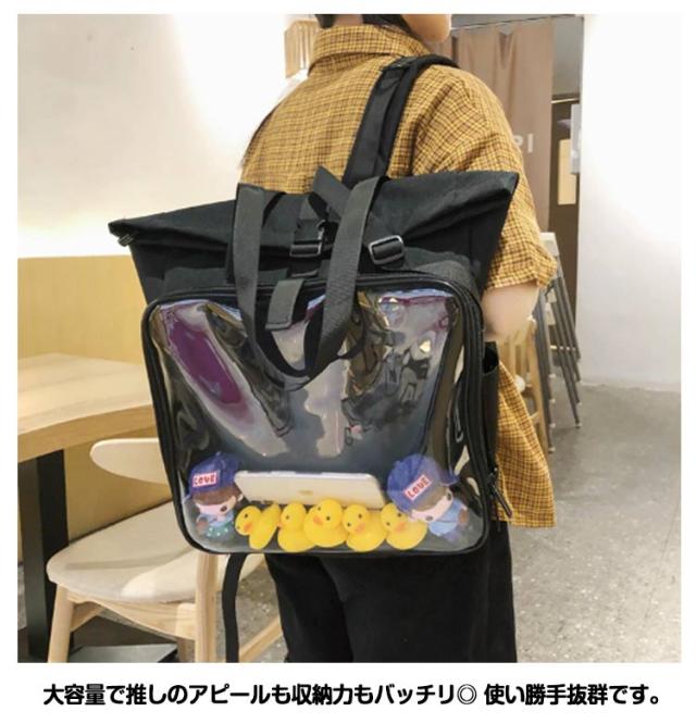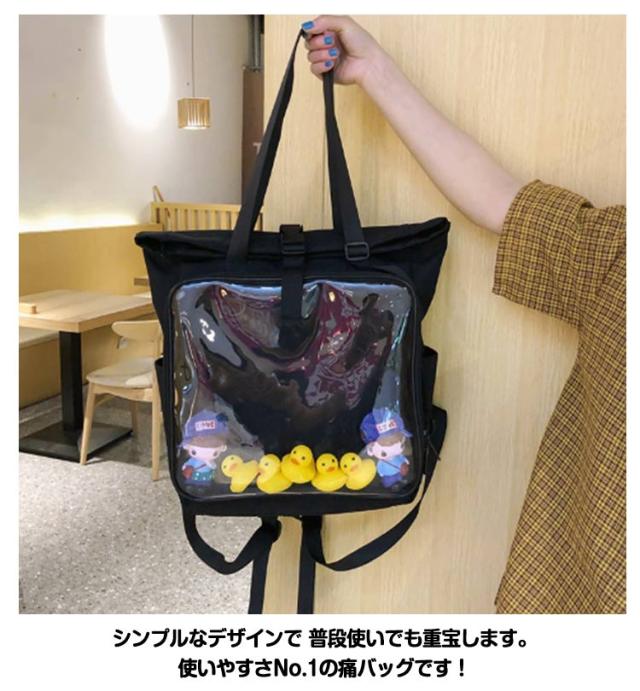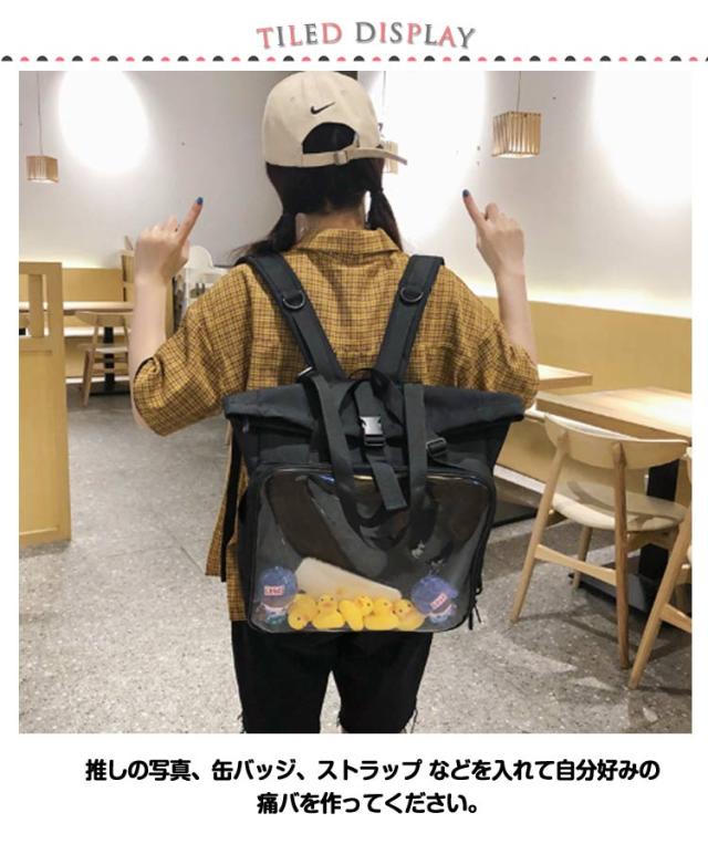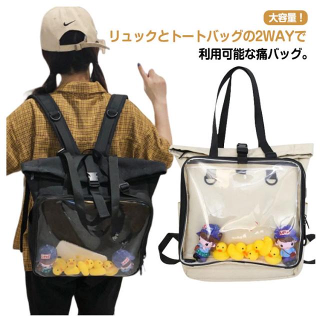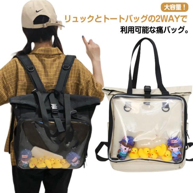 透明 2WAY ショルダーバッグ リュック クリアバッグ 痛リュック トートバッグ 見せバッグ 大容量 痛バッグ リュックサック スクエアリュック ぬいぐるみ 缶バッジ 推し活 ライブ イベント 通勤 痛バッグ リュック かばん 中学生