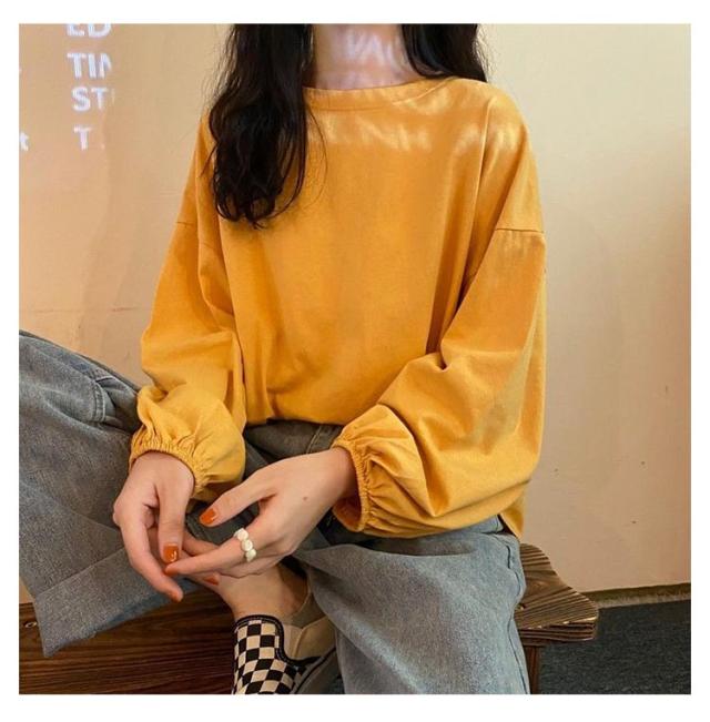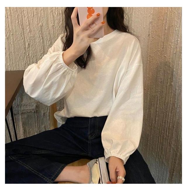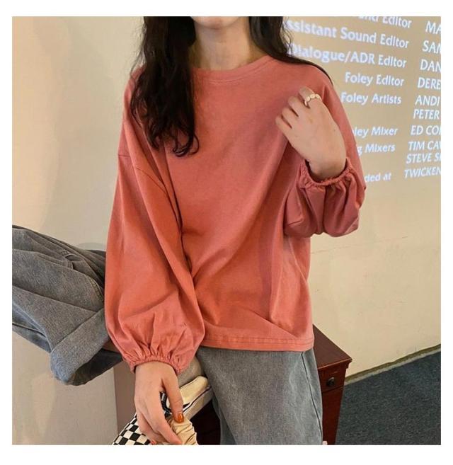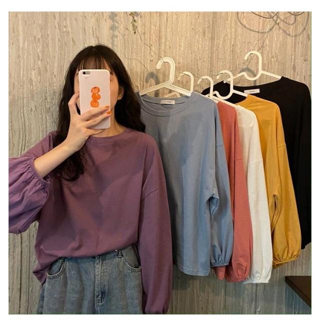 きれいめ 長袖Tシャツ レディース 長袖 シンプル おしゃれ トップス カジュアル 丸首 ゆったり Tシャツ クルーネック トップス インナー 重ね着 パフスリーブ カットソー プルオーバー 長袖Tシャツ おしゃれ 部屋着 春夏