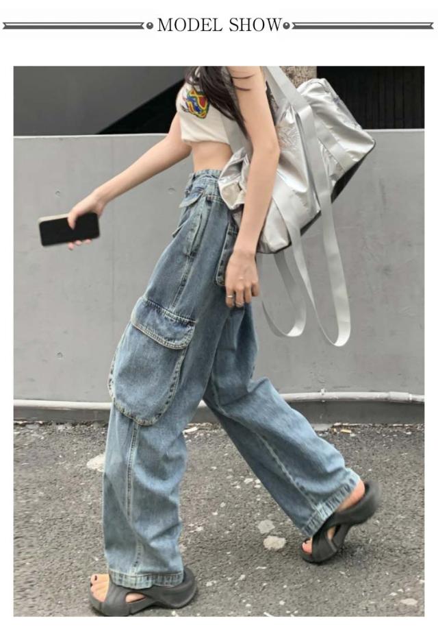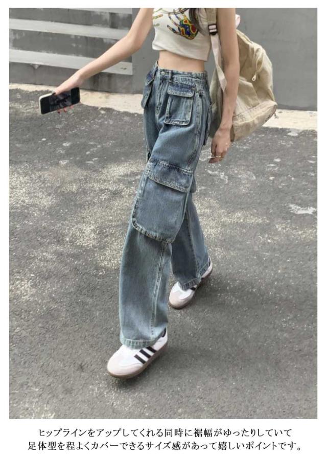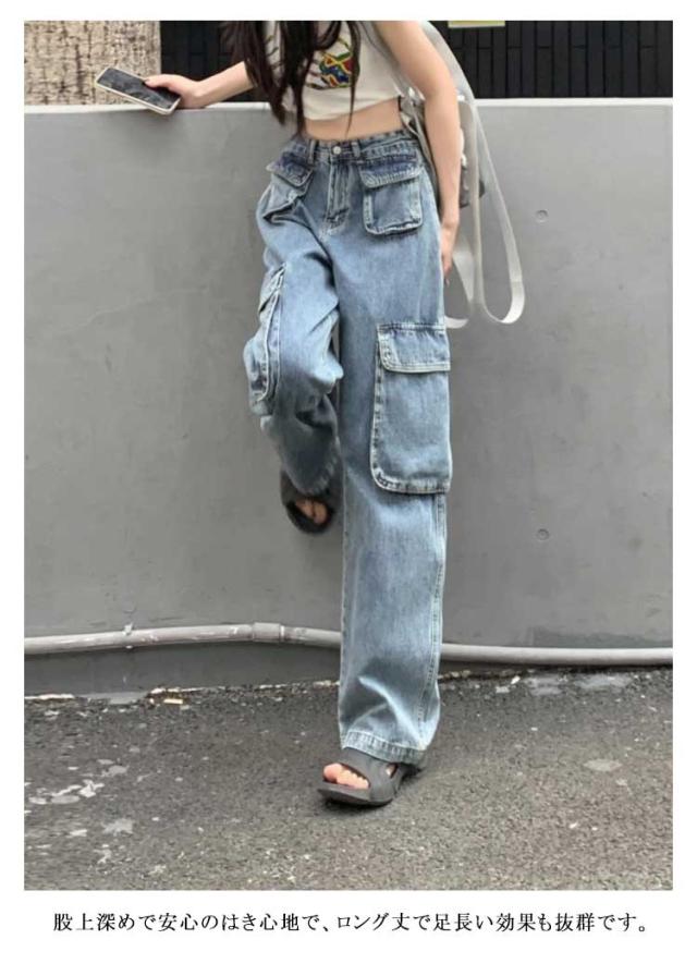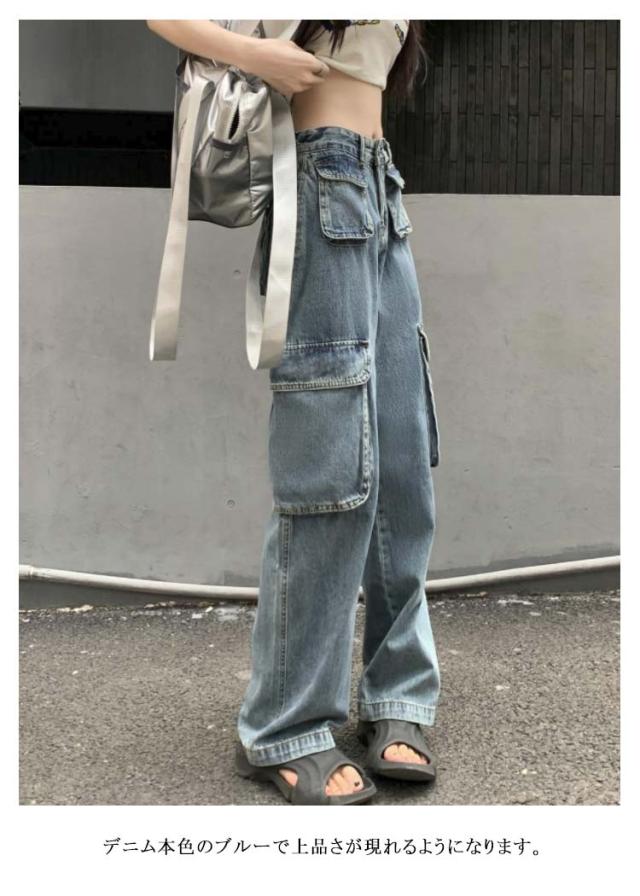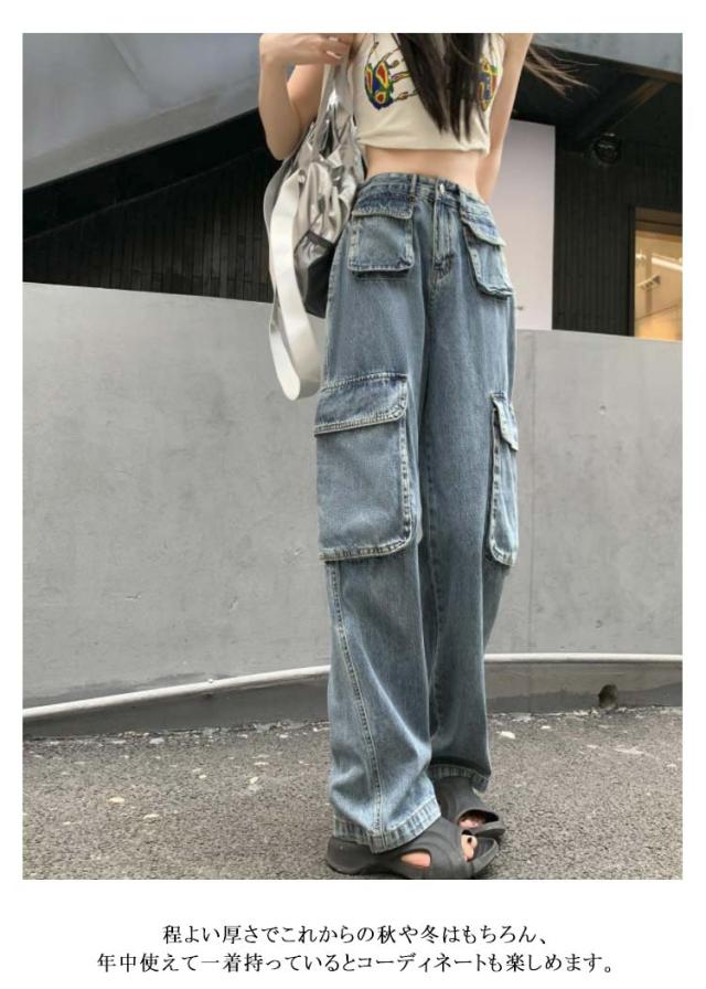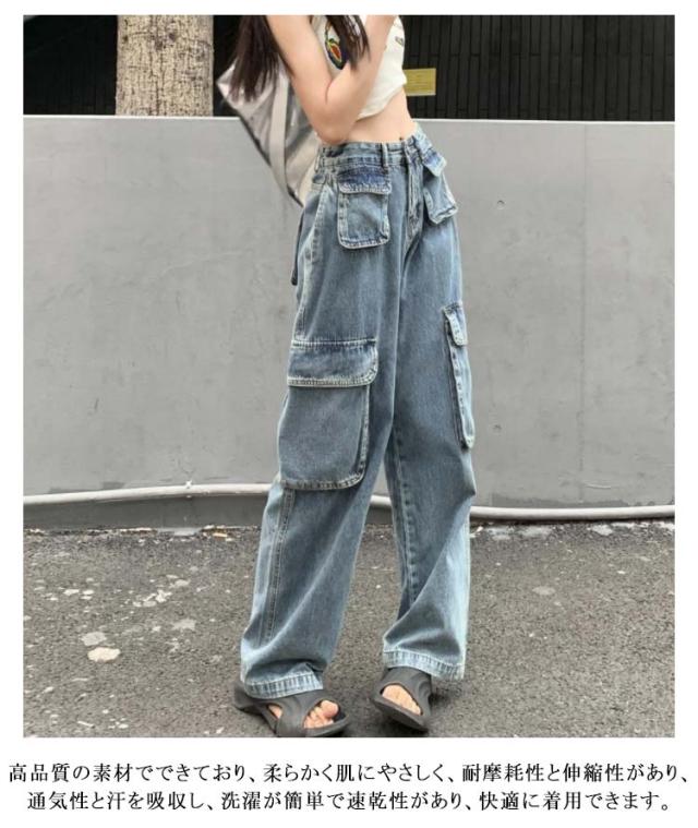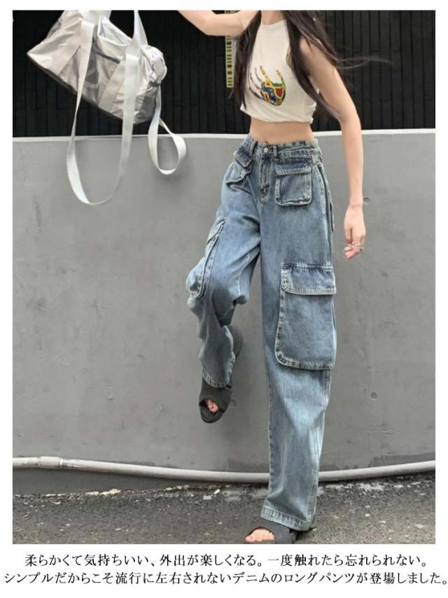 ロングパンツ デニムパンツ レディース デニムカーゴパンツ カーゴパンツ デニム パンツ ズボン ジーパン レディース ワイド ワイドパンツ ジーンズ ストレート カジュアル カーゴパンツ ストリート お出掛け 通勤 普段着