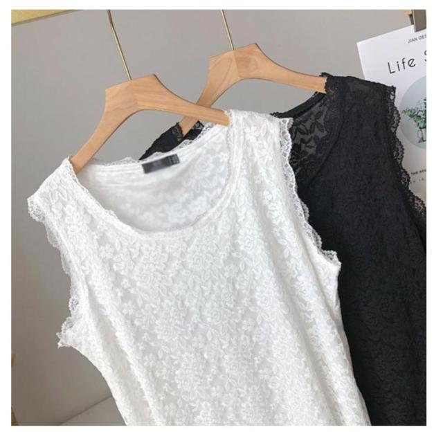 ロング丈 大きいサイズ 体型カバー 重ね着 レース お尻が隠れる 総レース タンクトップ 春夏 トップス 裾レース ロング丈 レイヤード レディース ノースリーブ 袖なし Tシャツ インナー 肌着 きれいめ 大きいサイズ 可愛い 無地