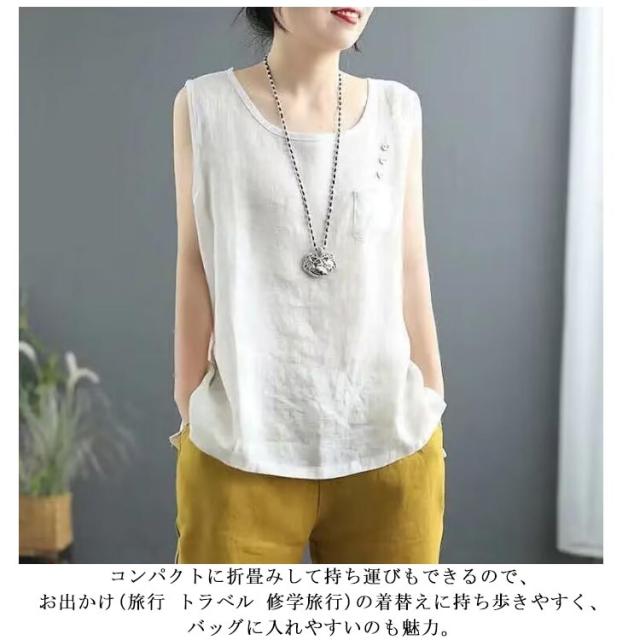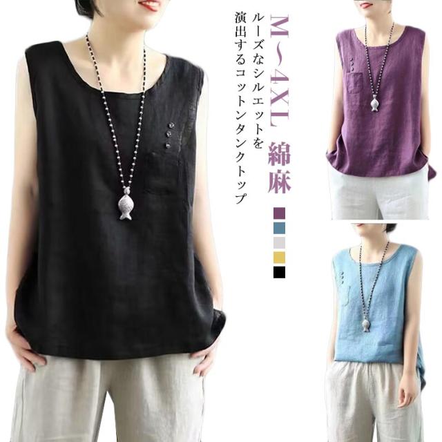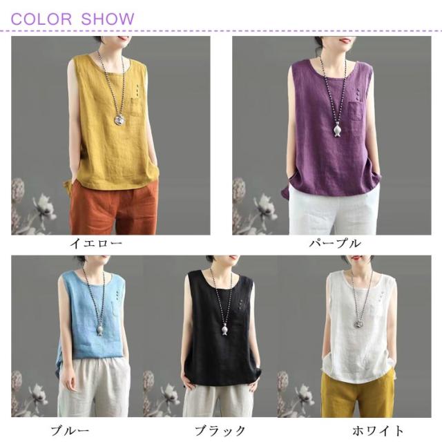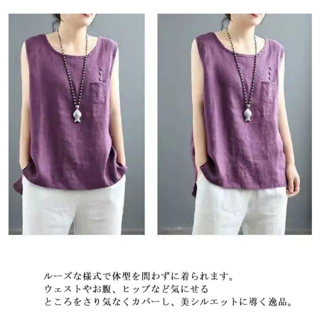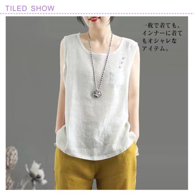 タンクトップ レディース コットンリネン ゆったり ノースリーブ ラウンドネック レディースファッション インナー 袖なし 綿麻 Uネック レイヤード スタイル 綿 女性 重ね着 大人 タンクトップ 体型カバー 春夏 リラックス おしゃれ かわいい 涼しい 夏 無地