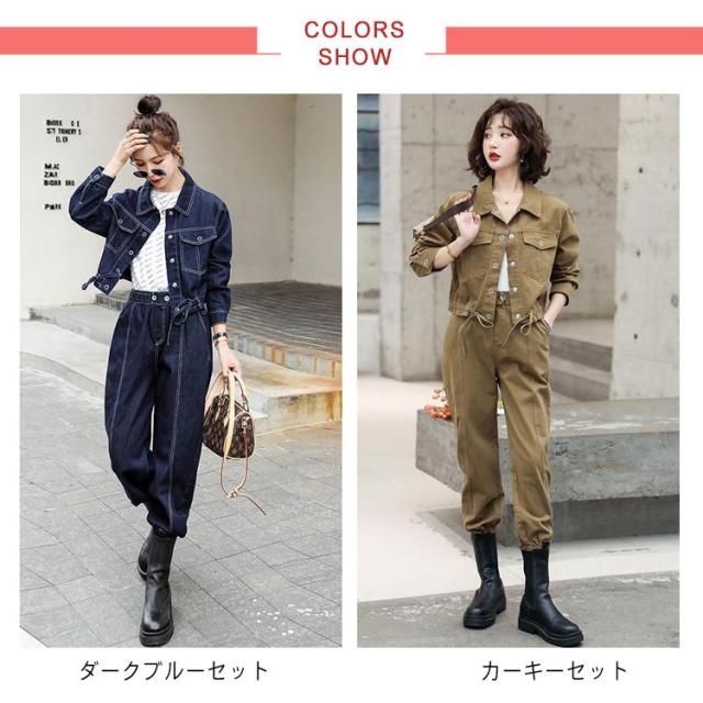 | 幅広い着こなしが叶う!カジュアルの定番デニムセットアップ ジャケットとパンツのセットアップな着こなしがハイセンスなお洒落アイテム! ジャケットやズボンの裾はゴム入りで引き締まったシルエットに! ウエストもゴム仕様で嫌な締め付けがありません。 ハイウエストパンツで美脚効果も抜群! 春・秋兼用で使える万能から使いまわし抜群の優秀アイテム! | |
