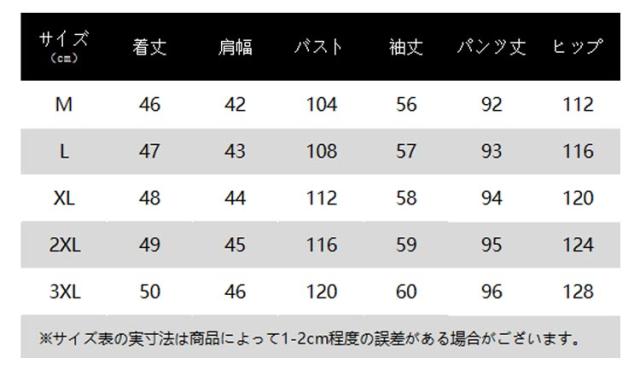 | サイズ | M L XL 2XL 3XL |