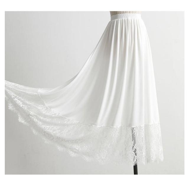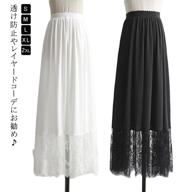 レディース ペチコート 裾 レース ゆったり ロング ペチコート きれいめ インナー ペチスカート スカート マキシ丈 ペチコート インナー ホワイト ガールズ 重ね着 見せ 白 裾レース付き 体型カバー 大人 おしゃれ ナチュラル 春夏 フリーサイズ 20代 30代 40代 50代