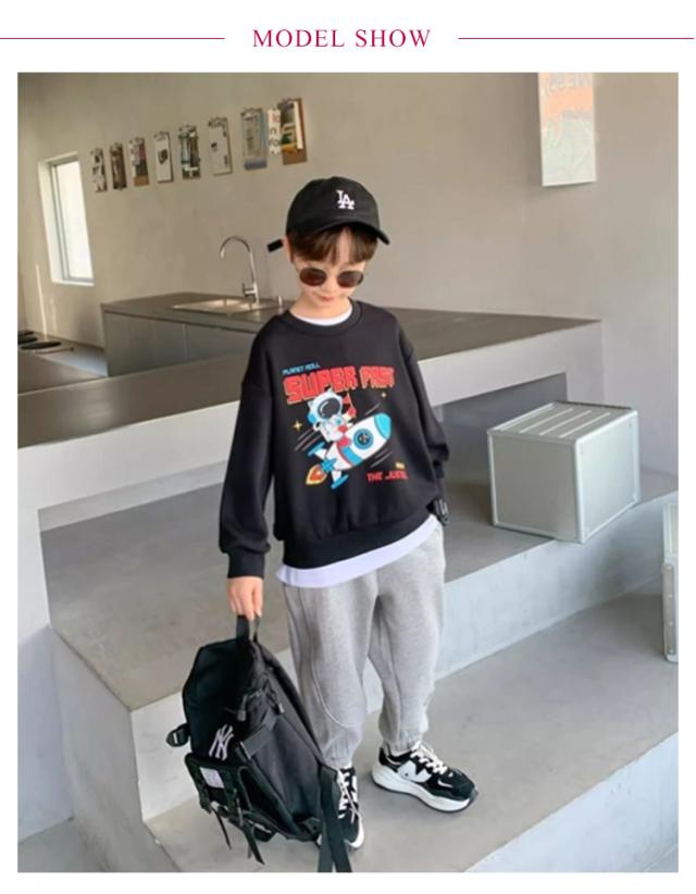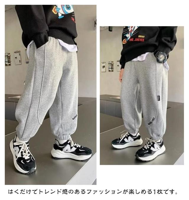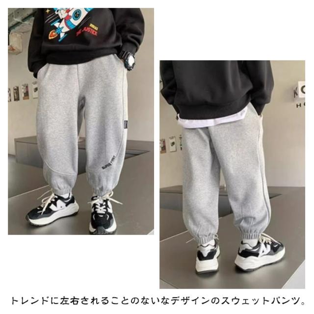 | 110-170cm!子供スウェットパンツ。トレンドに左右されることのないなデザインのスウェットパンツ。 裾を絞り足元にボリュームを出す着こなし。 はくだけでトレンド感のあるファッションが楽しめる1枚です。 程よい厚みがあり、長いシーズン着まわしやすい素材です。 通園通学着としてはもちろん、お出かけコーデにもおすすめ。 | |