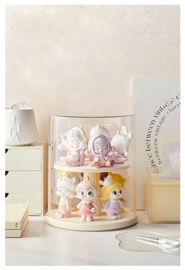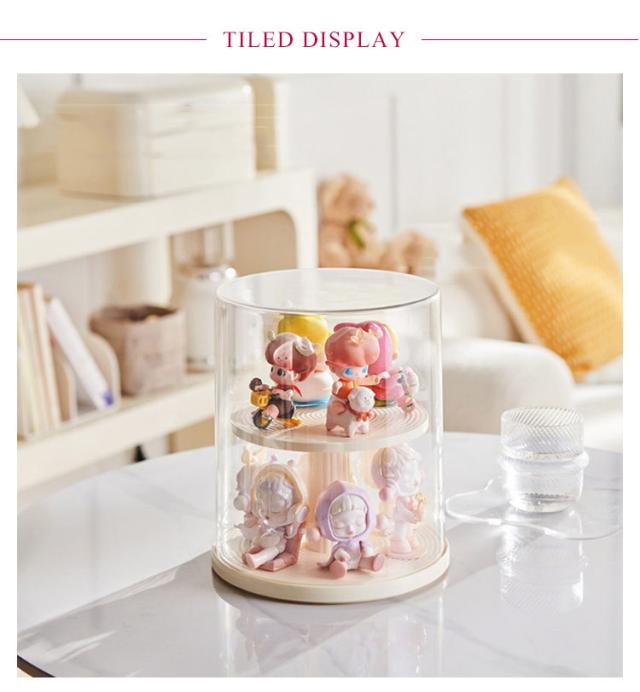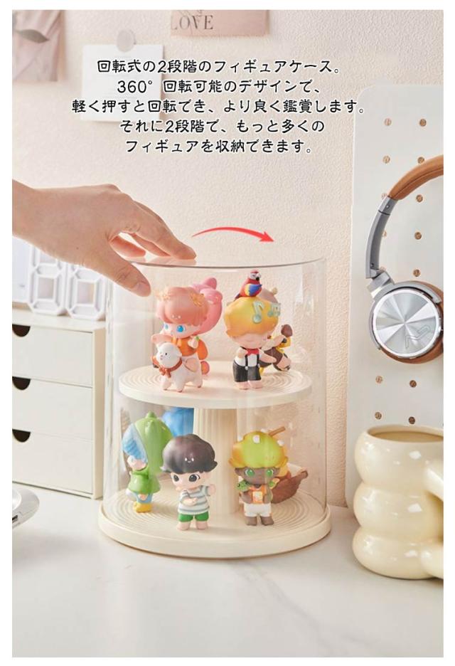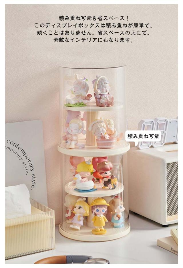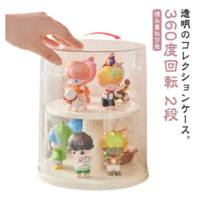 コレクションケース 卓上 アクリル ケース 陳列ケース ケース 展示用 小型 フィギュア ミニカーケース クリア コレクションケース 透明 収納ボックス 積み重ね可能 人形 2段 回転式 防塵 防湿 360度回転 おしゃれ 円型 模型