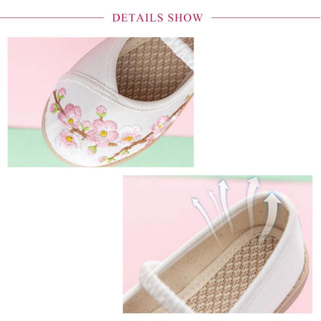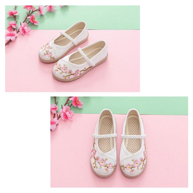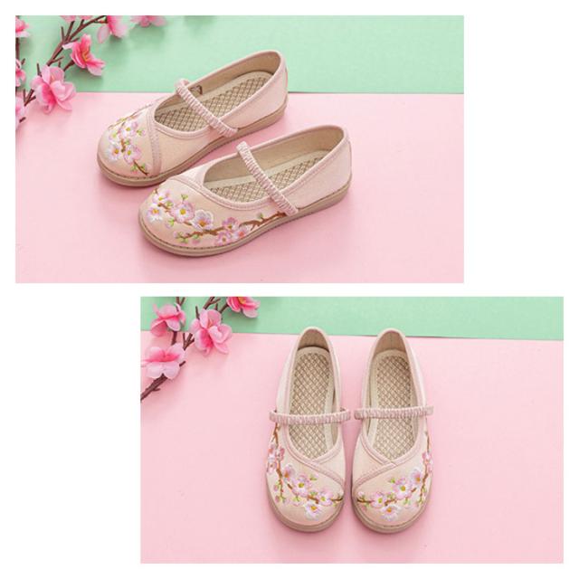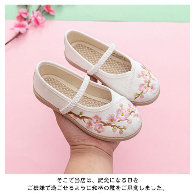 | 桜の花が刺繍された可愛い七五三の靴です。 ゴムの甲ベルトも付いているのですぽっと脱げてしまうこともありません。神社など段差の多い場所や砂利道でもへっちゃらです。 軽くて柔らかい生地で履き心地抜群♪ ぺたんこだからとっても歩きやすい。 そこで当店は、記念になる日をご機嫌で過ごせるように和柄の靴をご用意しました。 刺繍がされていて、着物ともなじみやすく、非常に軽くて柔らかい靴ですので、神社など段差の多い場所や砂利道もへっちゃらで機嫌よく歩いてくれますよ。 七五三だけでなく、普段の靴として履いても可愛いです。 | |