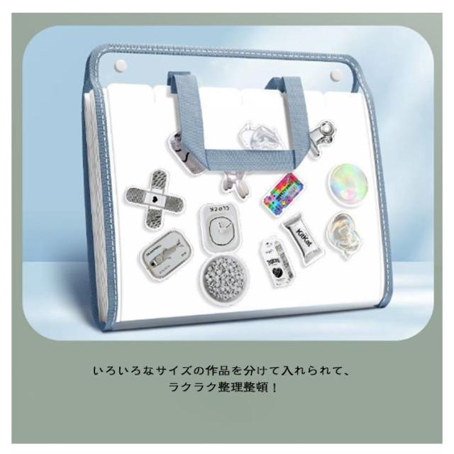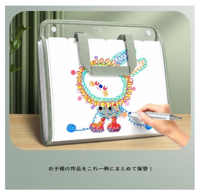 | 【大容量】整理収納に最適! 取っ手付きで持ち運びもラクラク♪ いろいろなサイズの作品を分けて入れられて、ラクラク整理整頓! お子様の作品をこれ一冊にまとめて保管! 学校・オフィス・旅行に最適 口開きが広く、 物の出し入れがしやすくなっております。 | |