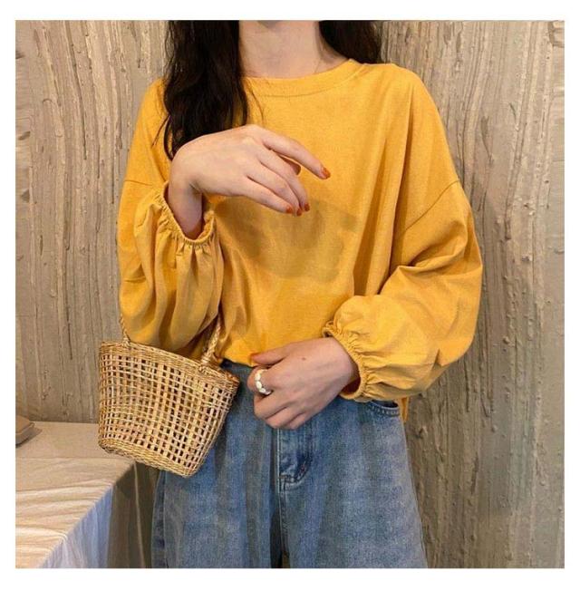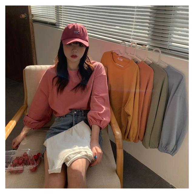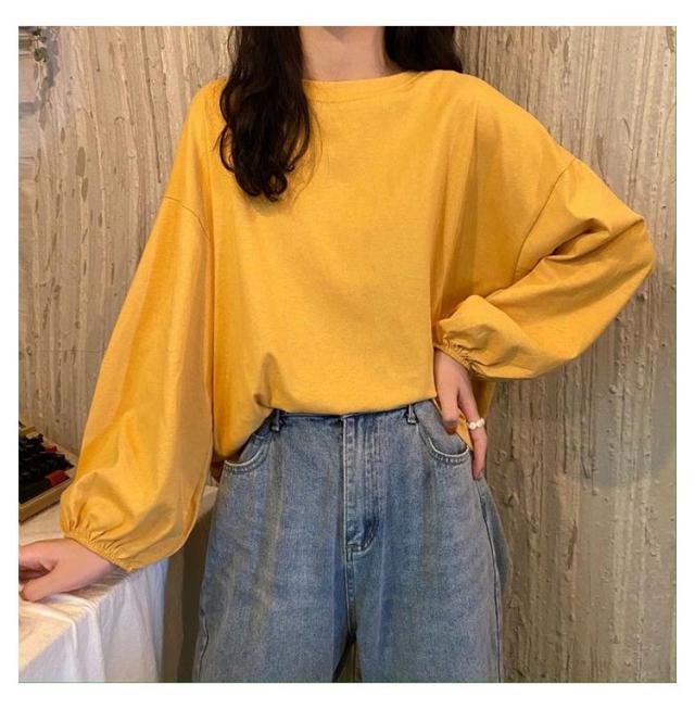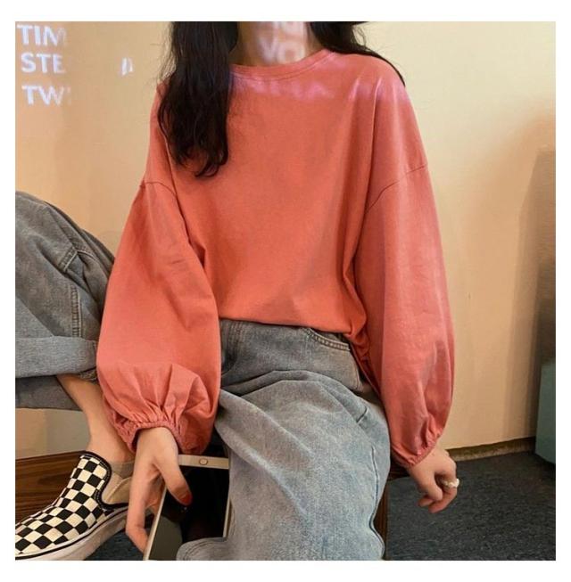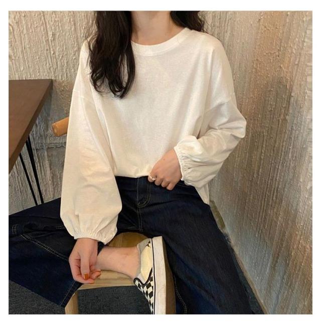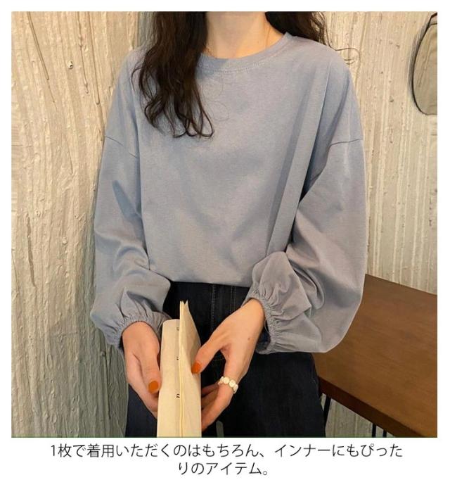 トップス トップス レディース 大人かわいい シンプル カットソー おしゃれ カジュアル 長袖Tシャツ Tシャツ 丸首 長袖 クルーネック インナー 重ね着 パフスリーブ ゆったり プルオーバー きれいめ おしゃれ 部屋着 春夏