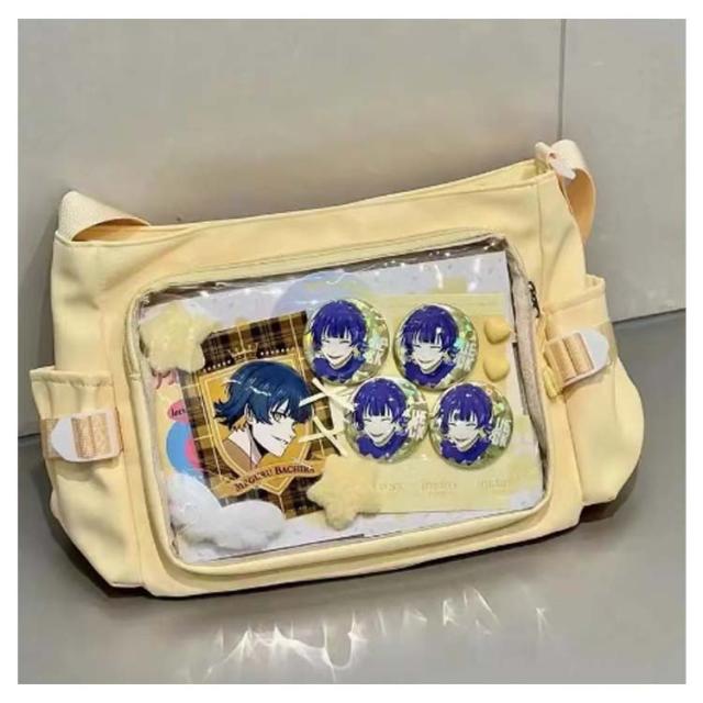 | シンプルなデザインと使い勝手の良さによって、男女兼用、流行りに学生とか、誰でも適用します。 バッグの前面の透明ポケットで見せたいアイテムで自分の好みにアレンジできるトートバッグです。 好きな芸能人やアニメキャラの写真、缶バッジ、ストラップ、ぬいぐるみ、萌グッズなど入れて一目瞭然です。 | |