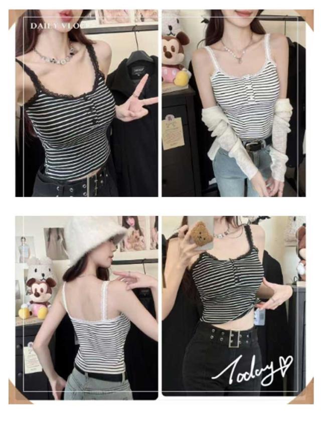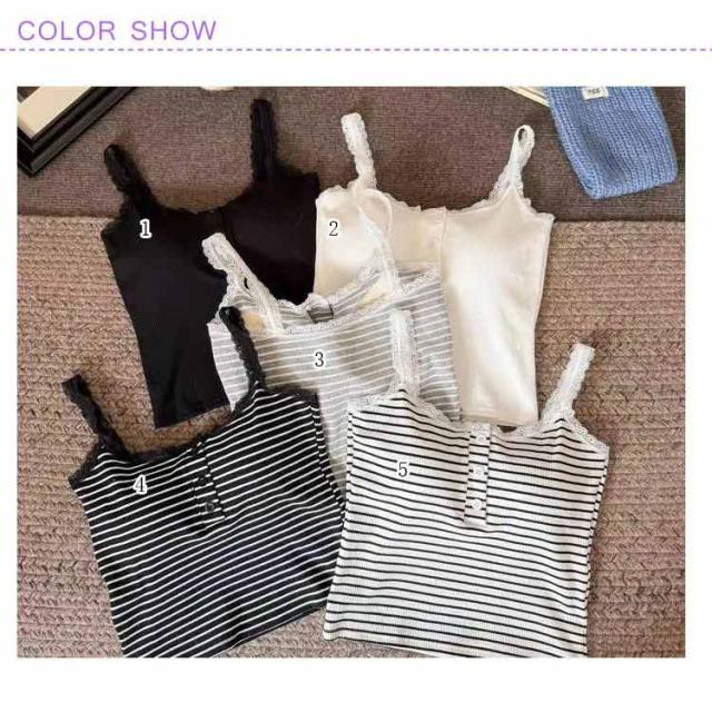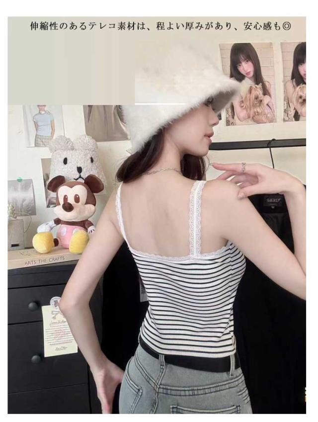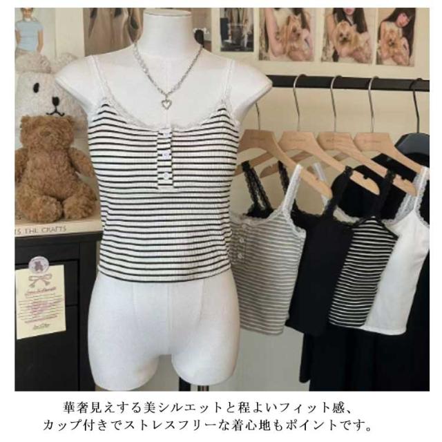 下着 レース ブラジャー ノーワイヤー レース ブラキャミソール レディース カップ付き ブラトップ ブラキャミ インナー タンクトップ パッド付き 通気性 透けない キャミソール ストレッチ 秋 ストライプ柄 春 夏 肩紐レース トップス ボダン付き テレコ リブ