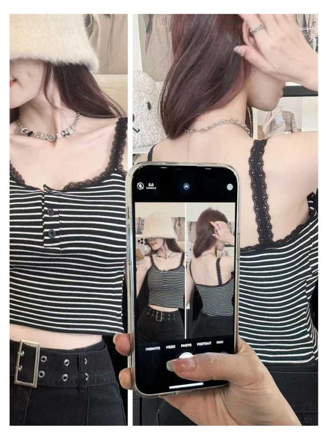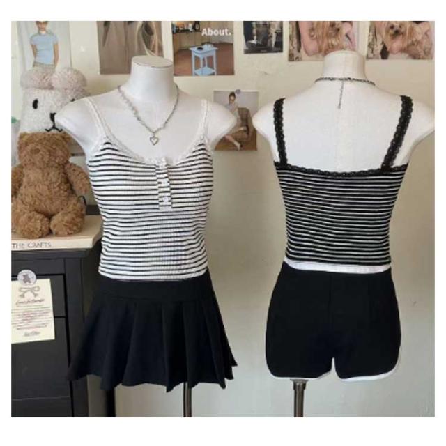 | 紐レースが可愛いキャミソール。【ストライプ柄】 華奢見えする美シルエットと程よいフィット感、カップ付きでストレスフリーな着心地もポイントです。 そのまま一枚でも、シャツやジャケットのインナーとしてもマルチにお使いいただけます。 伸縮性のあるテレコ素材は、程よい厚みがあり、安心感も◎ | |