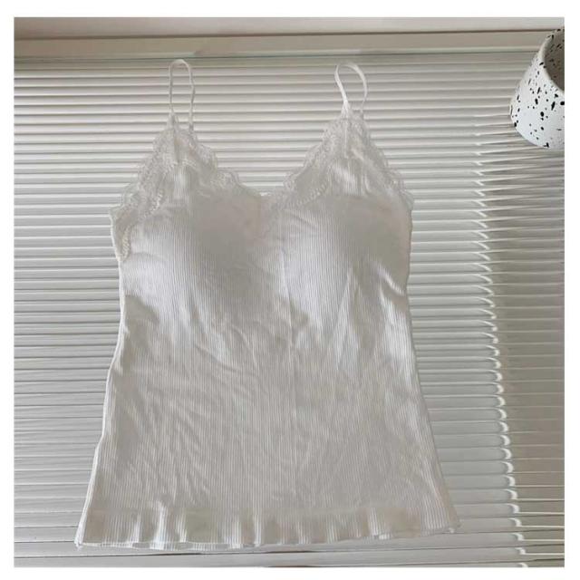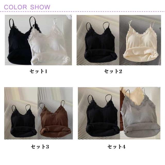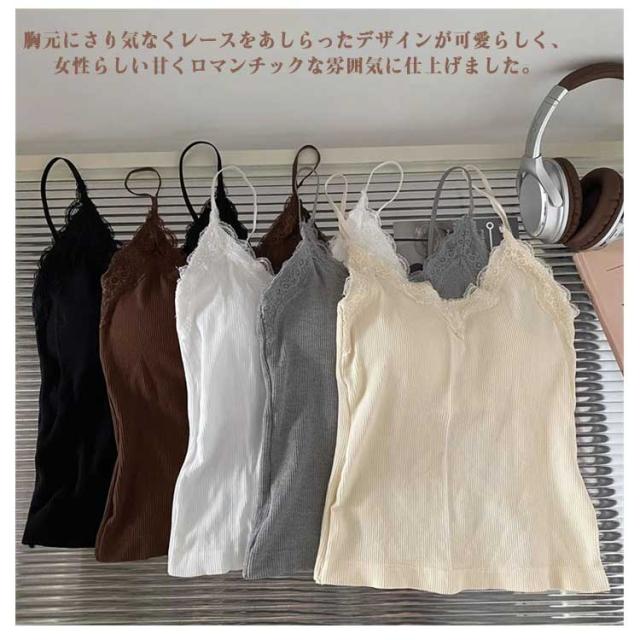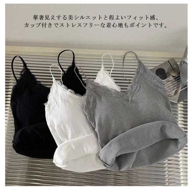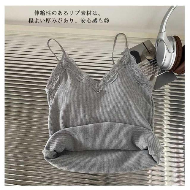 カップ付き 蒸れない 2点 Vネック キャミソール リブ レース セット ブラジャー レディース 下着 インナー パッド ブラトップ ブラキャミソール 春 胸元レース 通気性 透けない 2点 ストレッチ ブラキャミ ノーワイヤー 夏 秋 トップス 大人可愛い