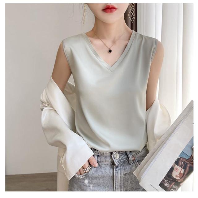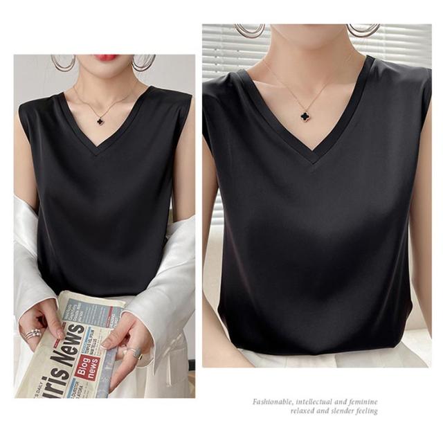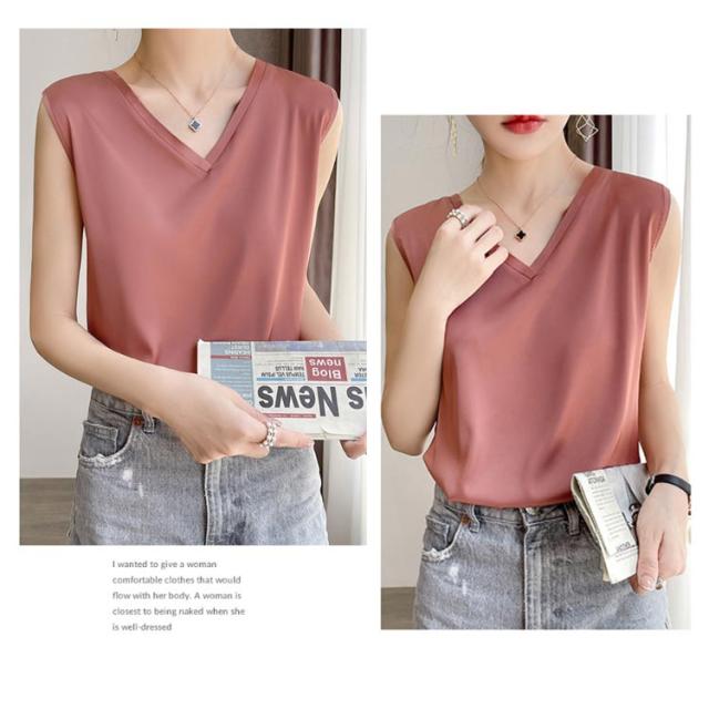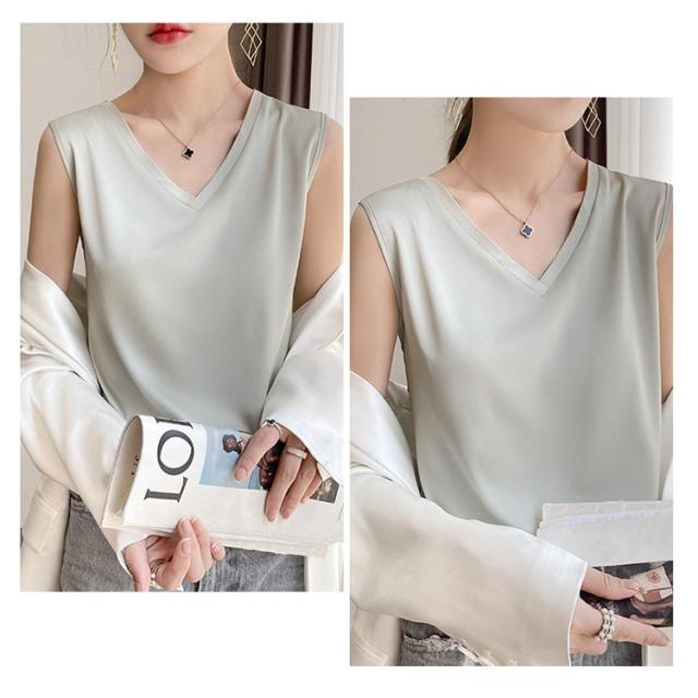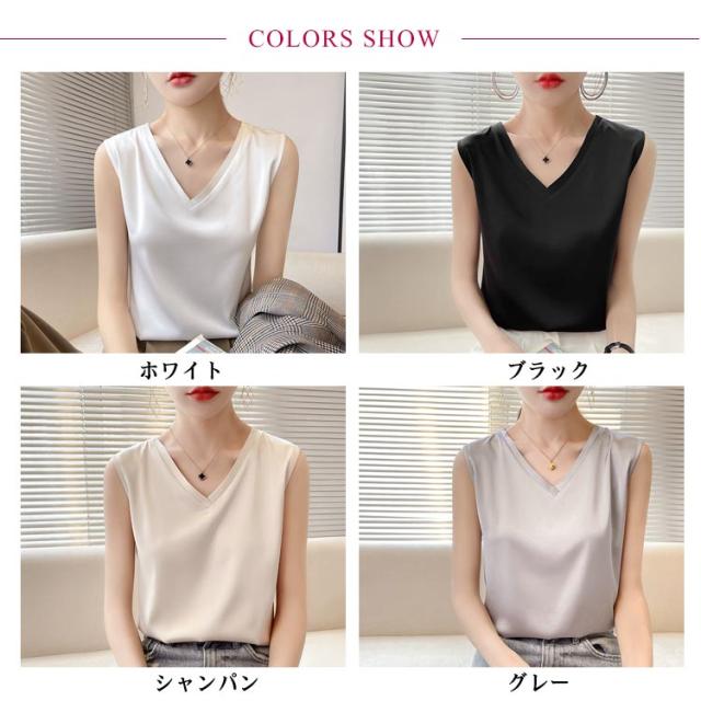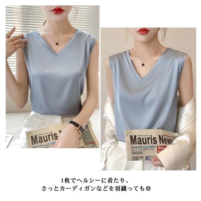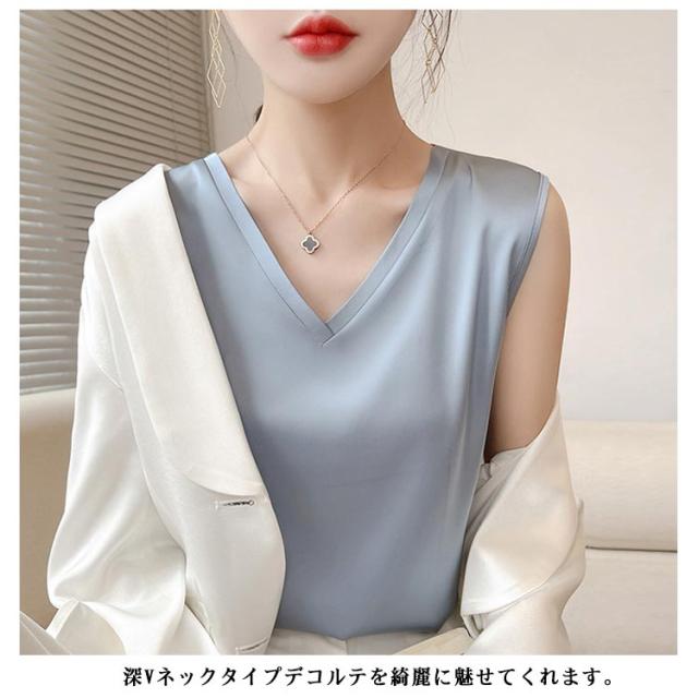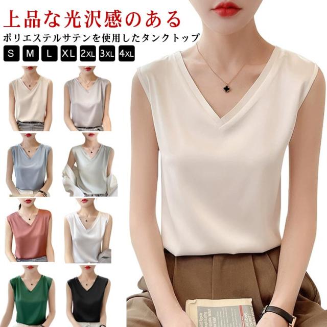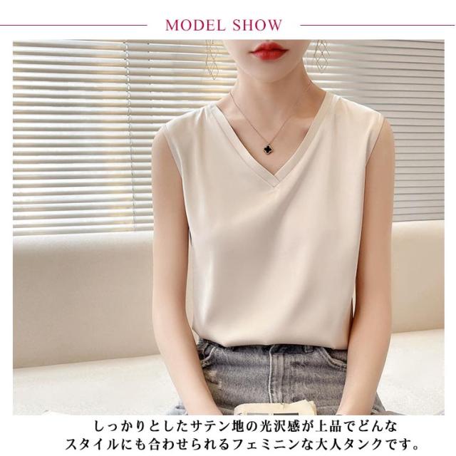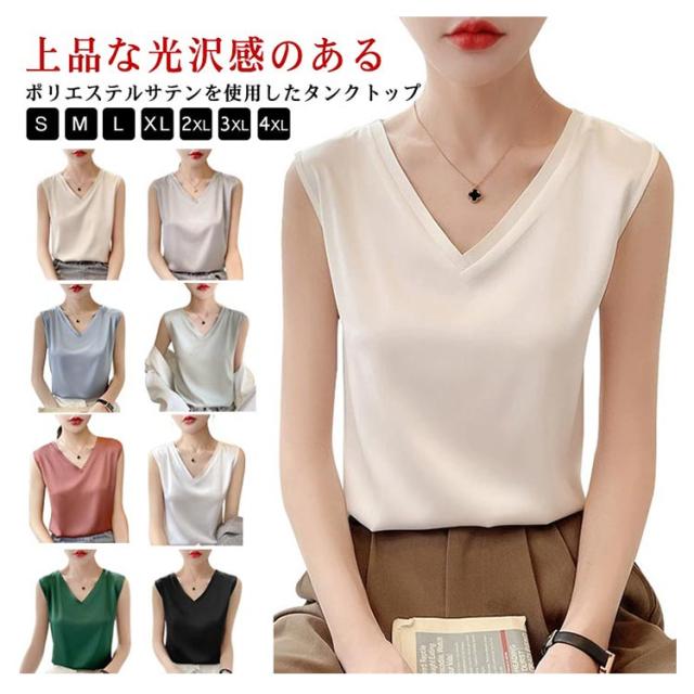 サテンタンクトップ Vネック 光沢感 春 サテン サテンタンク タンクトップ きれいめ 接触冷感 体型カバー インナー 夏 下着 トップス ベスト レディース 蒸れない キャミソール サテンタンクトップ 大人可愛い ゆったり 大きいサイズ 通勤 おしゃれ 【送無】