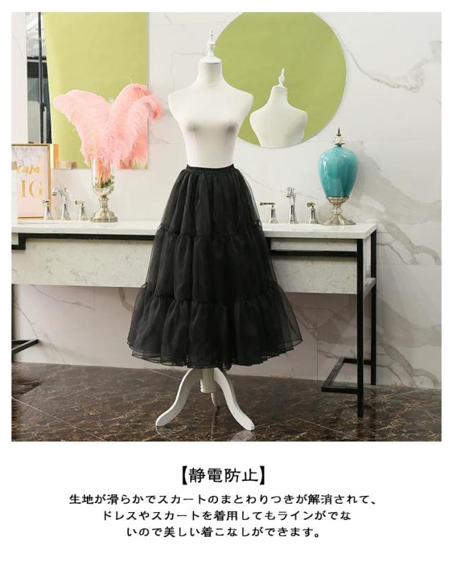 レディース パニエ ロング ブラック 黒 白 ふわふわ 大人 着丈80cm ホワイト ロリータ 3段 ミディアム 日常 ロングパニエ ペチコート パニエ バレエダンス フリルいっぱい インナー