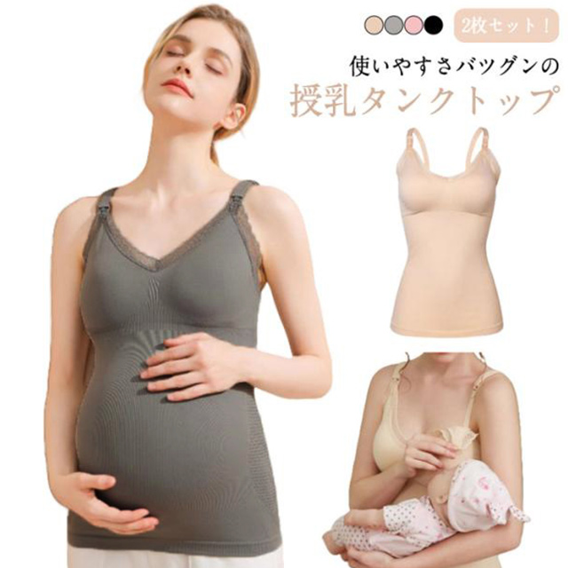 授乳キャミソール ブラタンクトップ 授乳ブラ 授乳用 2枚セット カップ付き キャミ 授乳キャミ キャミ ブラ 授乳 キャミ パッド入り ブラ 授乳服 授乳インナー タンクトップ 肌着 マタニティ ストラップオープン シームレス 産前 ブラ 2枚セット 産後 妊婦 ラク