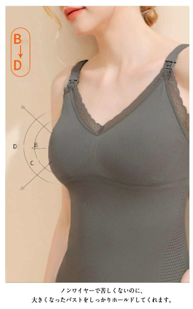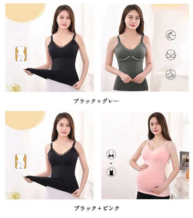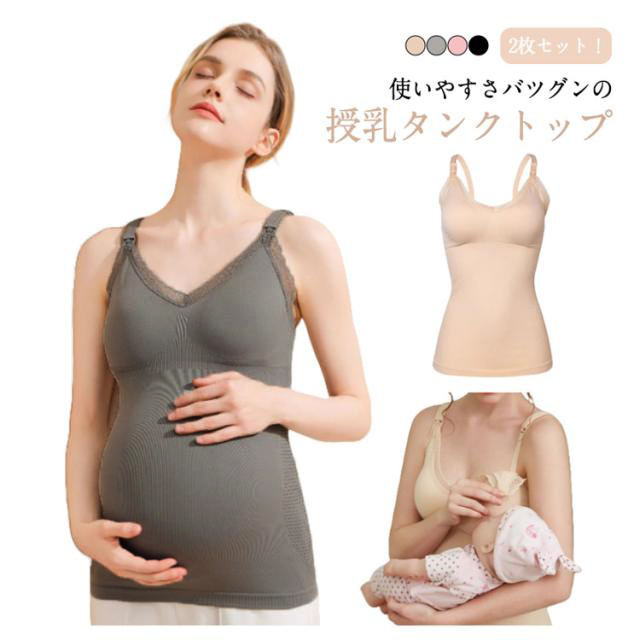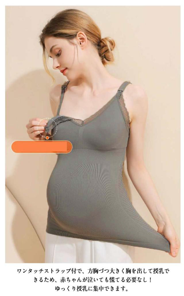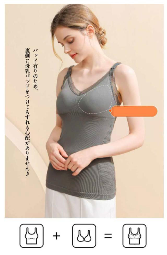 | 2枚セット!使いやすさバツグンの授乳タンクトップ 肌触りのよい生地なので、授乳中のデリケートなお肌も赤ちゃんにも安心して着用していただけます。 ノンワイヤーで苦しくないのに、大きくなったバストをしっかりホールドしてくれます。 パッド有りのため、裏側に母乳パッドをつけてもずれる心配がありません♪ ワンタッチストラップ付で、方胸づつ大きく胸を出して授乳できるため、赤ちゃんが泣いても慌てる必要なし!ゆっくり授乳に集中できます。 幅広のストラップで付け心地も良くサイズ調整もできます。卒乳後も、ブラキャミとしてお使いいただけます。 バストをしっかりホールドしてくれるため、卒乳後のバストケアとしてもお使いすることが出来ます! | |