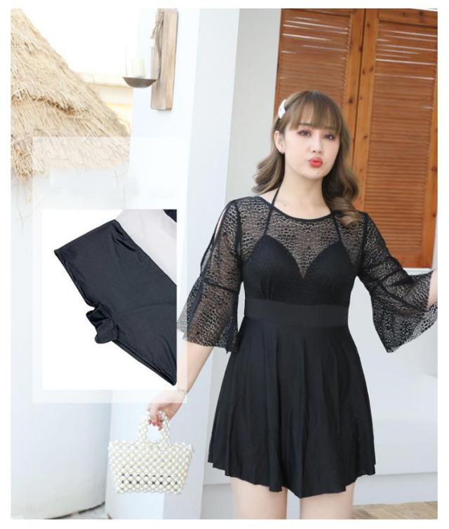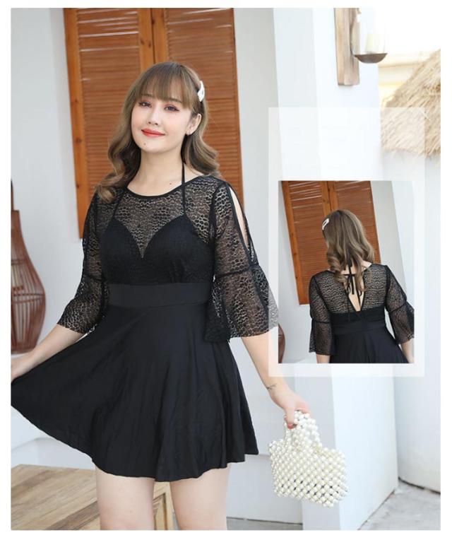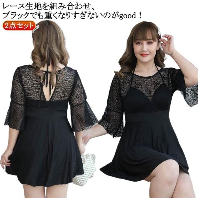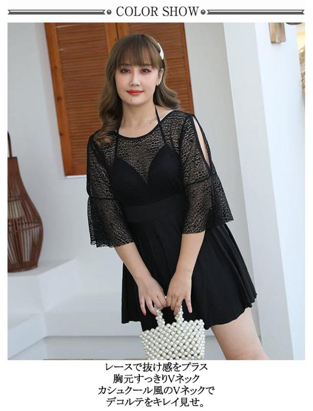 大きいサイズ レディース 体型カバー水着 ぽっちゃり オールインワン ワンピース水着 ママ水着 フレア 透け感 ワンピース水着 黒 オフショルダー 二の腕 カバーアップ 女性 オトナ女子 20代 30代 40代 即日発送 露出控えめ