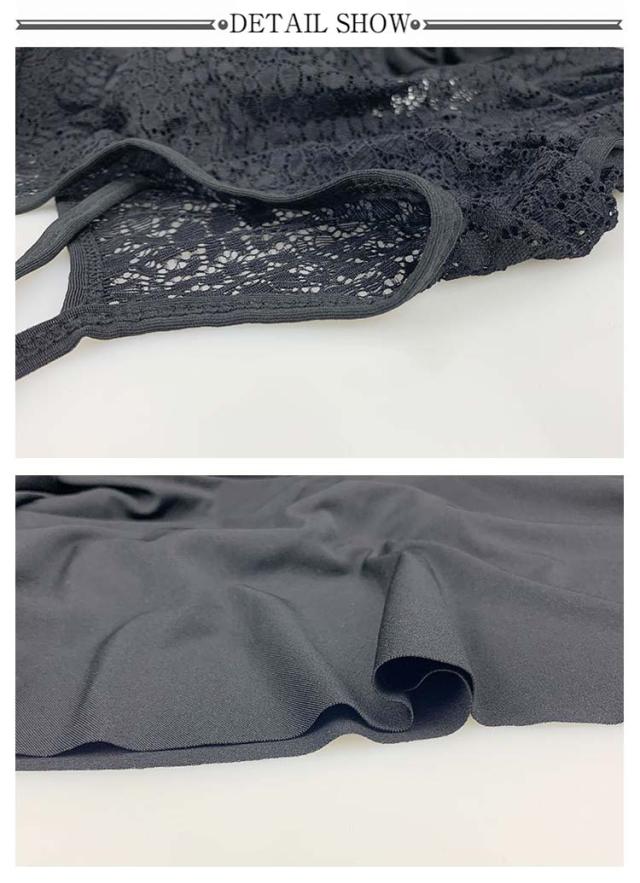 | レース生地を組み合わせ、 ブラックでも重くなりすぎないのがgood! レースで抜け感をプラス 胸元すっきりVネック カシュクール風のVネックで デコルテをキレイ見せ。 大胆すぎない肌見せで セクシーになりすぎないのが◎ | |