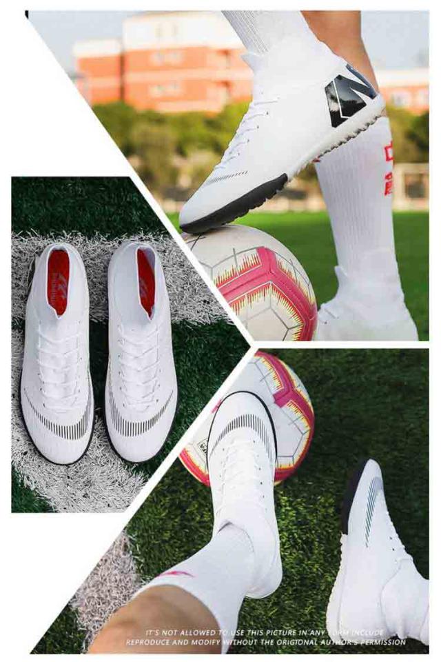 | 225−270mm!ハイカットのサッカーシューズ。 通気性の高い素材 を採用し、長時間の試合やトレーニングでも快適な履き心地。 ハイカットデザインは 足首をしっかりサポート し、安定性を向上させながら負傷リスクを軽減。 さらに、耐摩耗性に優れたソールが強力なグリップ力を発揮し、天然芝・人工芝どちらのピッチでも高いパフォーマンスを実現します! デザインポイント ハイカットデザイン —— 足首をしっかりホールドし、安定したプレーをサポート。 通気性アッパー —— 軽量で蒸れにくく、汗を素早く発散し快適な履き心地。 アウトソール —— 優れたグリップ力で、素早いターンやダッシュを実現。 人間工学フィット —— 足の形にフィットし、ボールコントロール性能を向上。 マルチグラウンド対応 —— 天然芝・人工芝ピッチ対応、試合・トレーニングに最適! | |