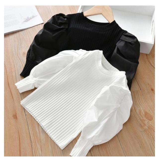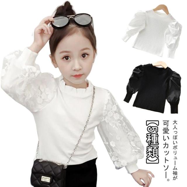 インナー 可愛い 子供服 袖レース 子供服 春秋 ロンT フリル衿 カットソー トップス バルーンスリーブ 長袖 女の子 可愛い 冬 あったか 100cm 長袖Tシャツ 110cm 130cm 120cm 150cm 140cm