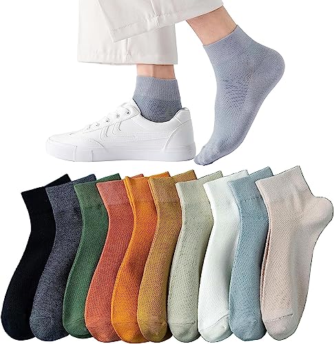 Tersila 靴下 メンズ【抗菌 防臭 吸汗 綿】くるぶしソックス スポーツソックス 吸汗10足セット 24-28cm 春夏秋冬 カラフルソックス ア