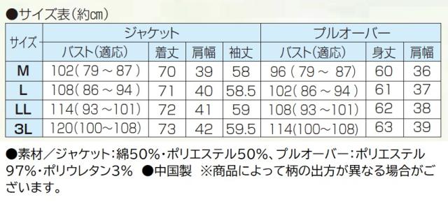 ●素材/ジャケット:綿50%・ポリエステル50%、プルオーバー:ポリエステル97%・ポリウレタン3%