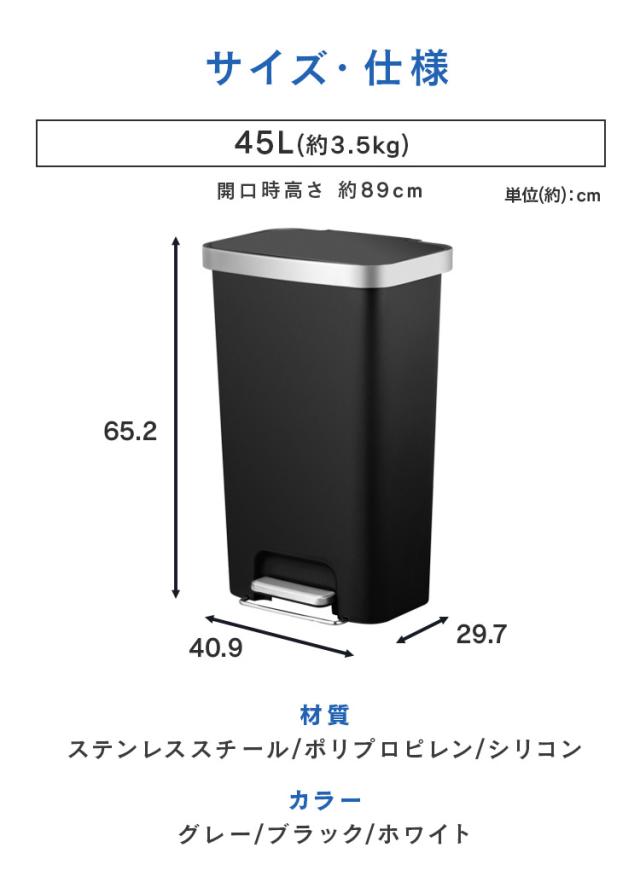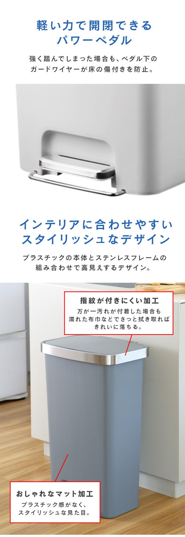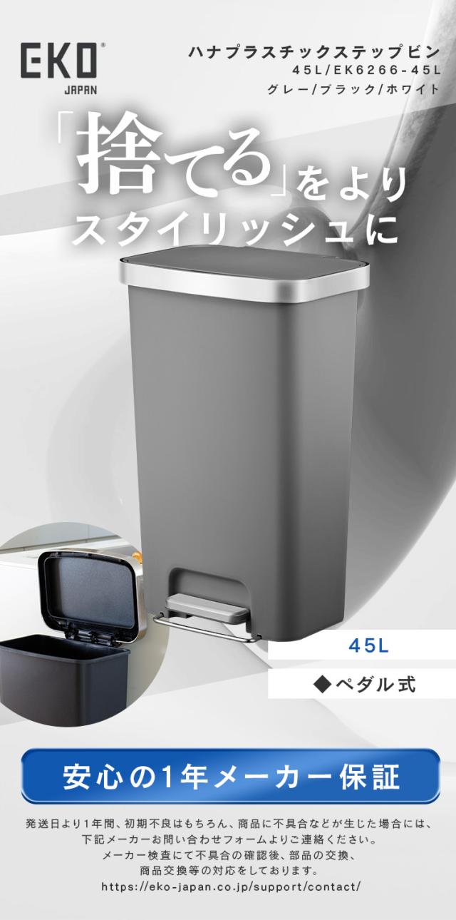 ★全品対象250円offクーポン★ ごみ箱 45L ふた付き ハナプラスチックステップビン 45L EK6266-45L-GR EKOJAPAN ゴミ箱 ステップ式 キャスター付き マット仕様 指紋が付きにくい プラスチック製 オイルダンパー 分別 汚れにくい 拭きやすい 送料無料