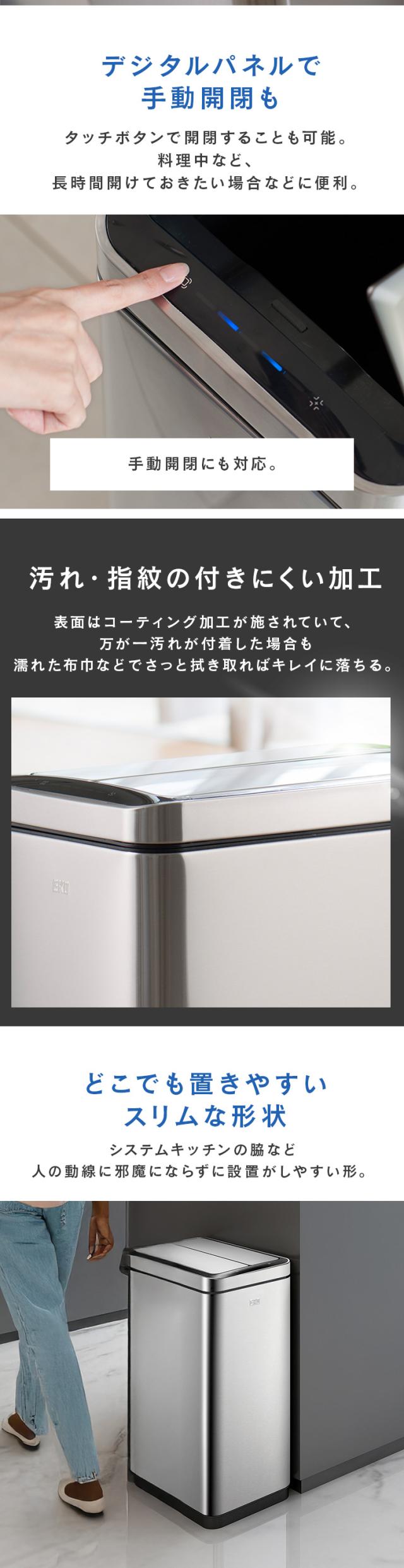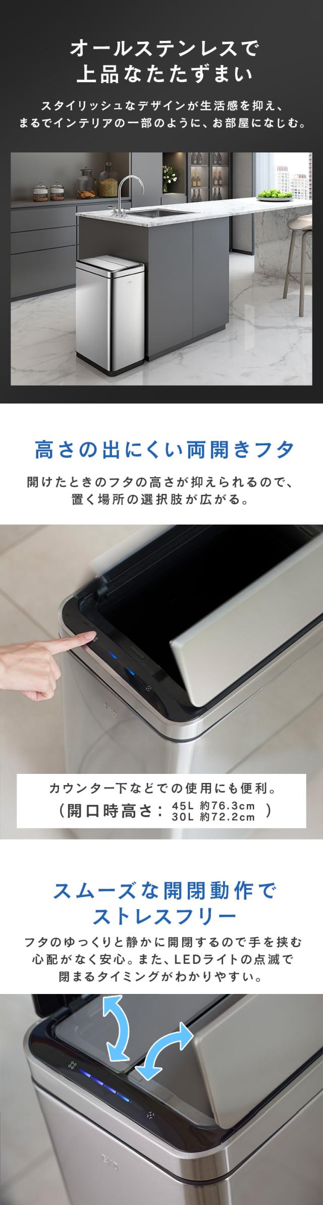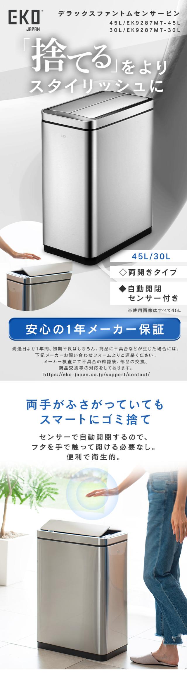 ★全品対象250円offクーポン★ ごみ箱 45L センサー デラックスファントム センサービン シルバー EK9287MT-45L EKOJAPAN ゴミ箱 センサー式 バタフライ開閉 観音開き インナーボックス付き ステンレス製 LED表示 2重構造 両開き 棚下 フタの自動開閉 送料無料
