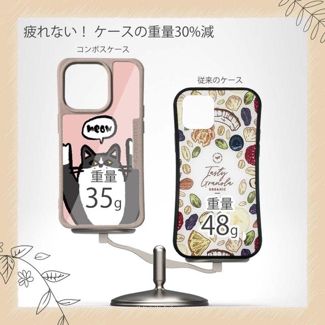 | 商品説明 | コンポスケースは、環境負荷低減を目的に開発されたスマホケース。従来のスマホケースと比べ、CO2排出量を50%削減できます。しかも、循環型社会に対応した素材を使ったケースです。 フレームカラーが4色からお選び頂けます。※コンポスケースとデザインシートが1つずつのセット商品となります。商品画像の15枚目と16枚目は、スマホの背景色によるサンプルです。ケース自体の背面は透明なので、スマホの背面色によってこのような色になるという例です。背景の色が選べる訳ではありませんので、予めご了承下さいませ。 デザイナー/wakat ![]() |