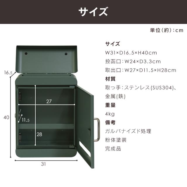 ・ストッパー付き:郵便取り出し口内部にストッパーが付いているため、投函された郵便物が前に落ちにくい設計になっております。