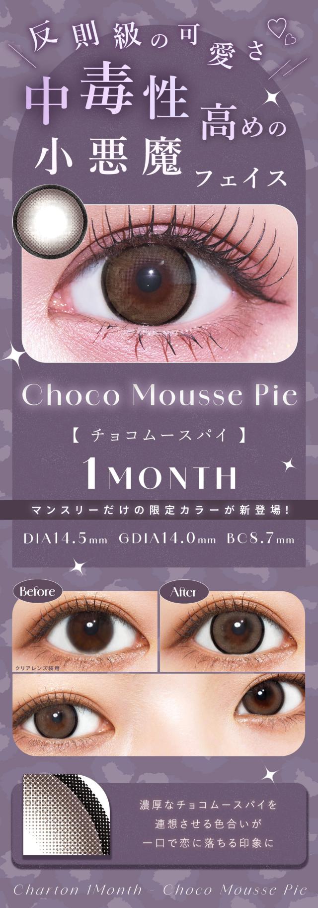 カラコン マンスリー シャルトン Charton 1month KINU きぬ 度あり 度なし 14.5mm チョコムースパイ チュロクレープ 太フチ 高発色 盛れる 低含水