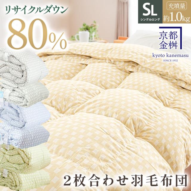 [keyword|2枚合わせ羽毛布団 シングル ウォッシャブル 国産 オールシーズン リサイクルダウン80% 再生羽毛 合掛け 肌掛け 羽毛布団 羽毛ふとん 日本製 京都金桝 エコ サステナブル]