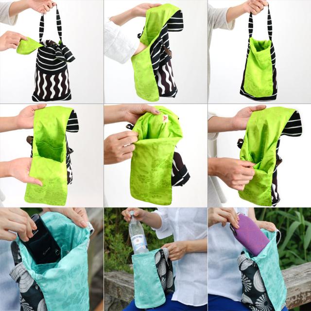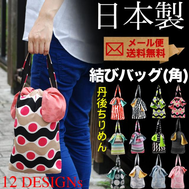 結びバッグ 角底 和柄ハンドバッグ 丹後ちりめん 日本製【メール便送料無料】手さげバッグ 手提げ 国産 メイドインジャパン 一色ちりめん 京都 一色テキスタイル 洗える 縮緬 友禅染め 小物入れ 和風 和小物 花柄 和柄 バッグ ペットボトル SALE