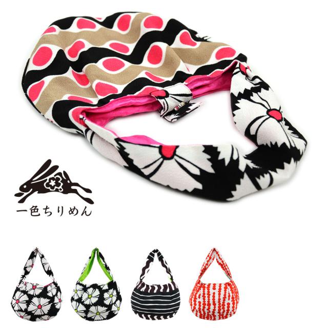 丹後ちりめん 手提げバッグ 縮緬 和柄バッグ 洗える丹後ちりめん 和柄 友禅染め スクリーンプリント 岩滝加工場 一色ちりめん ポリエステル 日本製 メイドインジャパン 京都産 メール便対応可 送料無料