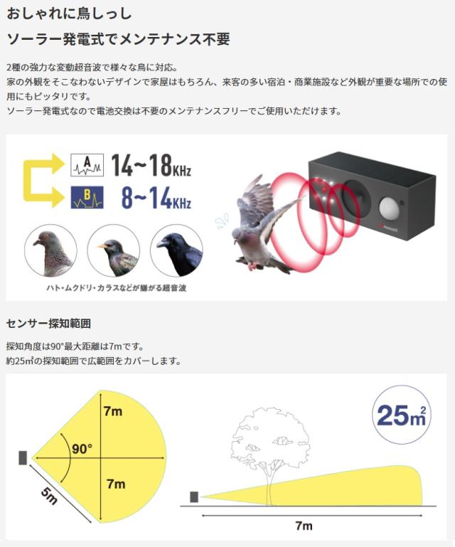 ムサシ REP-700 ソーラー鳥しっし 超音波鳥よけ IP65防水設計 musashi ’