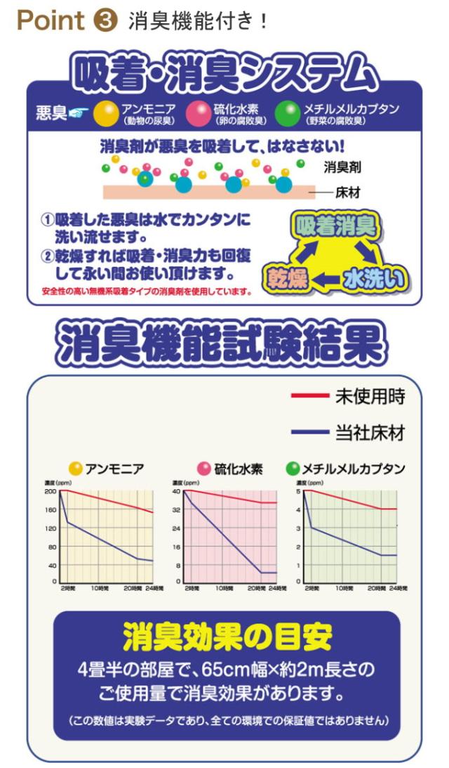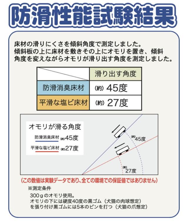 ペットにやさしい防滑加工。すべりにくい加工によりペットの足腰の負担を軽減します。 消臭加工で気になる臭いを軽減。水洗いすれば消臭効果は回復します。 防水仕様でお手入れも簡単です。 ペット小屋のアンダーシート、ケージのアンダーシートととしてお使いください。 |