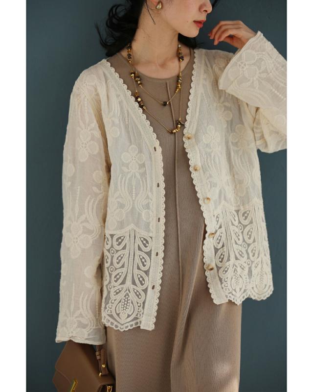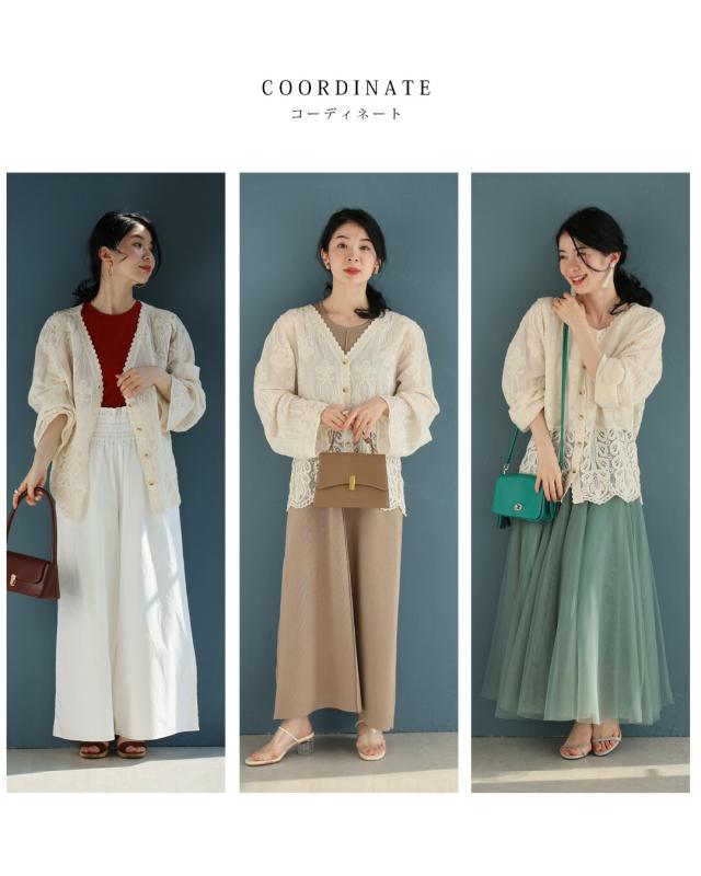 w61178ps 新作 新着 再入荷 CAWAII FRENCHPAVE フレンチパヴェ エレガント ベーシック カジュアル 可愛い かわいい カワイイ おしゃれ オシャレ お洒落 個性 個性的 定番 ベーシック 大人かわいい 大人可愛い 上品 女性らしい デザイン スタンダード ナチュラル きれいめ キレイめ シンプル フェミニン レディース レディースファッション 大人 ママ ミセス 30代 40代 50代 60代 柔らかな ボタニカルモチーフ 刺繍 カーディガン 羽織り 前ボタン 長袖 長そで ロング袖 S M L 2L フリーサイズ フリー 小さめ 小さいサイズ 低身長 痩せ ほっそり 小柄 細身 標準サイズ 大きめシルエット 大きい 大きめ ビッグシルエット ゆったり F サイズ自由 薄手 涼感性 涼しい ずずしい 春 夏 春服 春物 夏 夏服 夏物 春夏コーデ 軽やか 軽量 ベージュ レース 普段着 日常使い おでかけ 旅行 女子会 ナチュラル UV対策 紫外線対策 日焼け対策 冷房対策