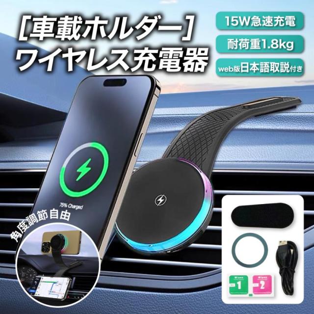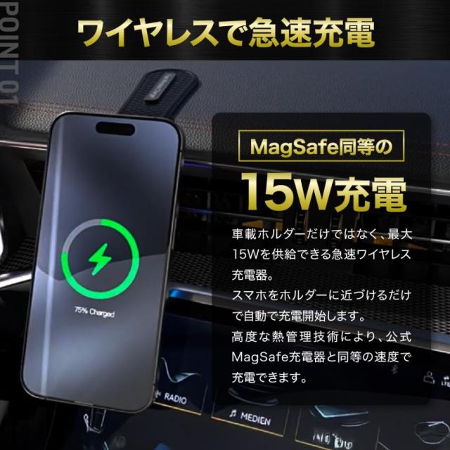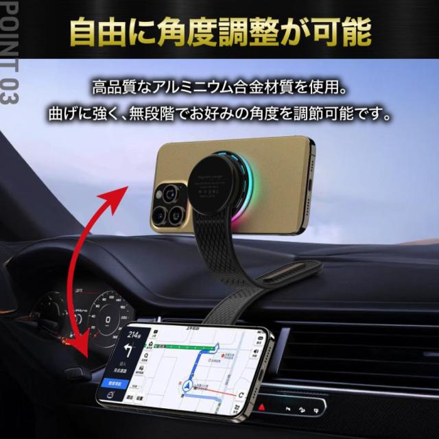 車載ホルダー ワイヤレス充電器 スマホ マグネット magsafe iPhone スタンド android 耐久性 吸着 急速 磁石 高速 頑丈 角度調整