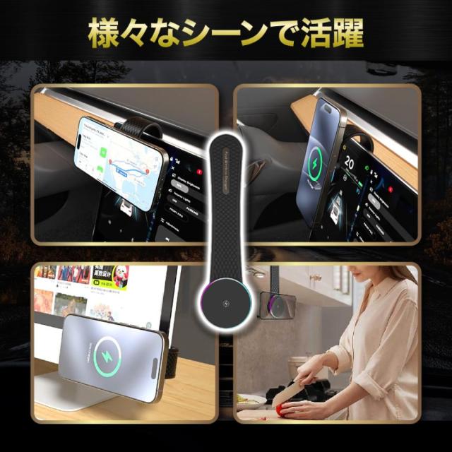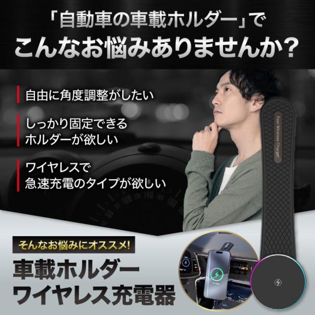 ワイヤレス急速充電機能搭載の車載ホルダーです