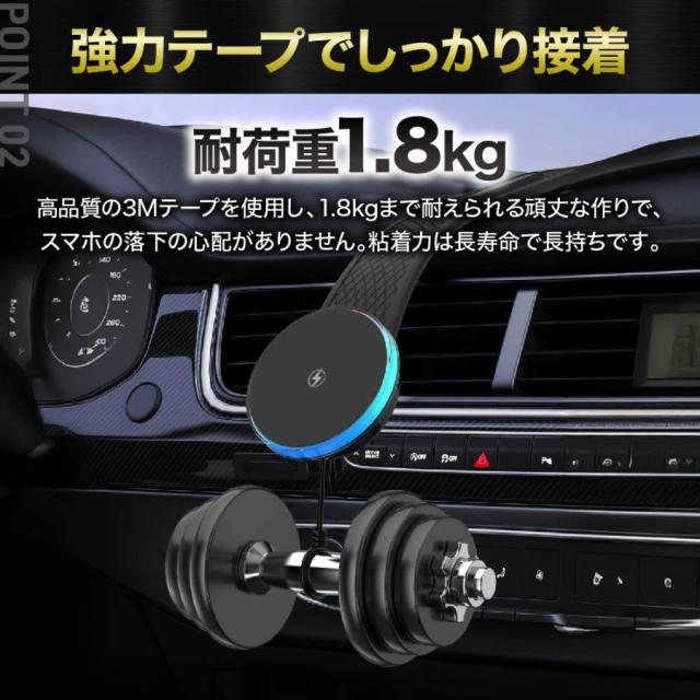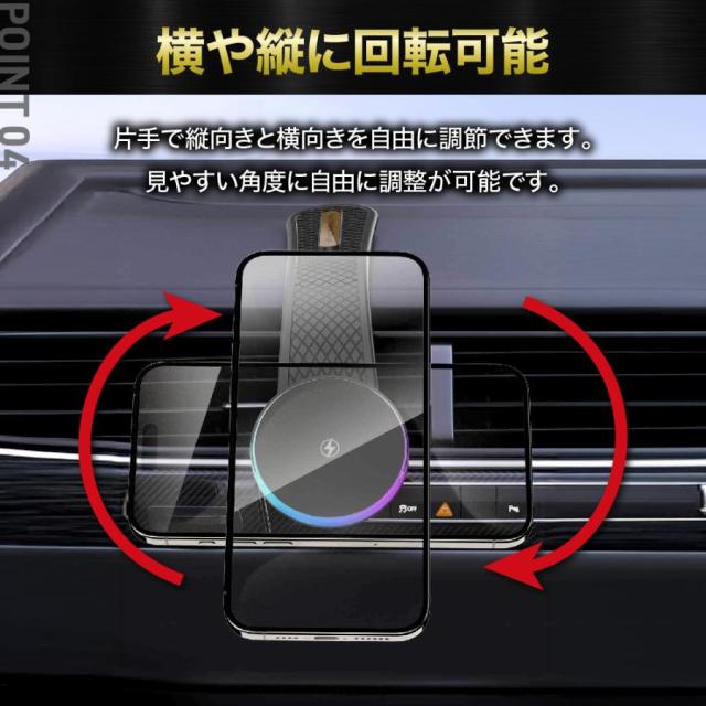 商品名:車載ホルダー ワイヤレス充電器 スマホ マグネット magsafe iPhone スタンド android 耐久性 吸着 急速 磁石 高速 頑丈 角度調整