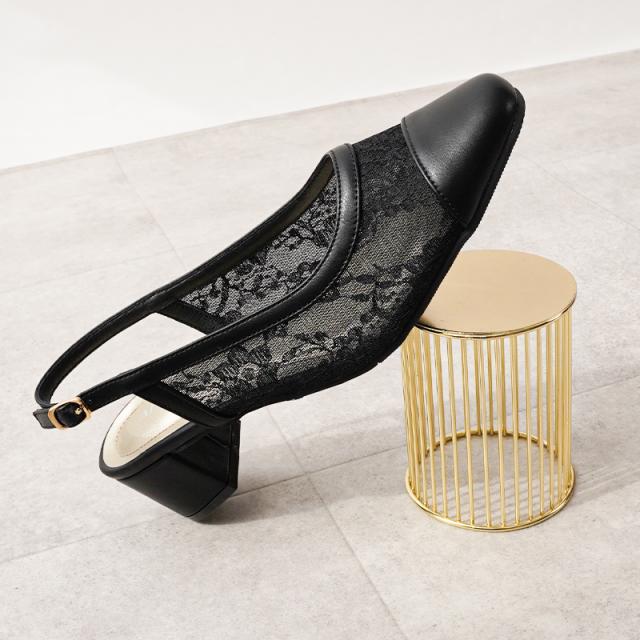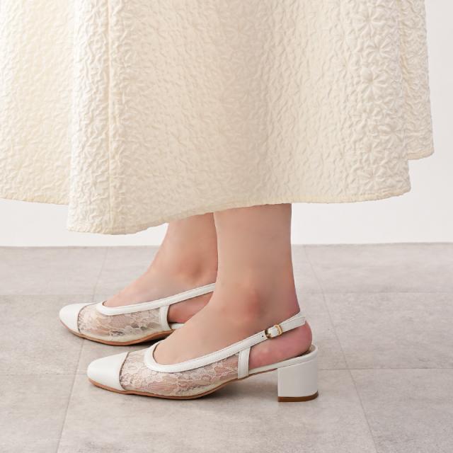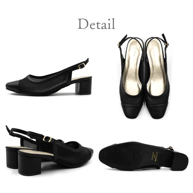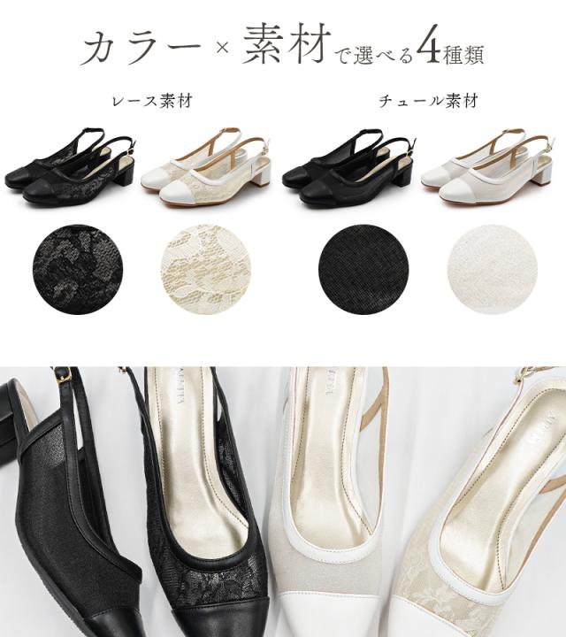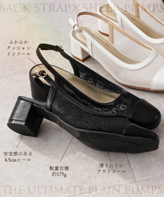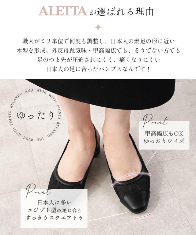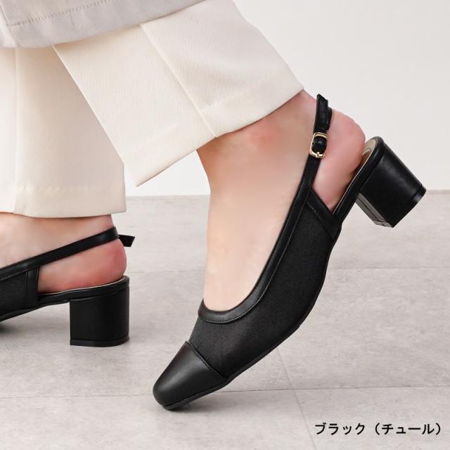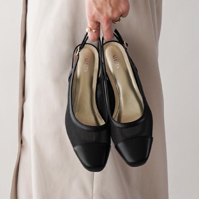 ALETTA バックストラップ パンプス シアー スクエアトゥ 4.5cmヒール ローヒール ストラップ ミュールパンプス チュール レディース 25春夏新作 幅広 外反母趾気味 甲高 黒 痛くない 柔らかい 究極のプレーン アレッタ 結婚式 パーティ 春 夏 きれいめ 軽量 送料無料