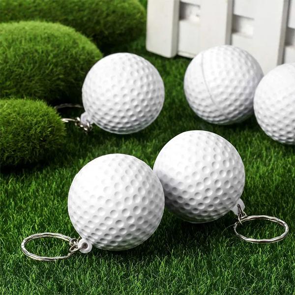 スポーツカーキーホルダー、ゴルフボールペンダント、お気に入りのスポーツマンギフト用キーリング、10個