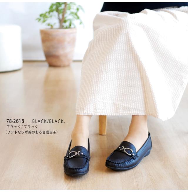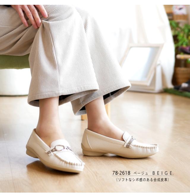 モカシンシューズ ビット 靴 レディース スリッポン ローファー フラットソール モックトゥ スクエア 軽量 柔らかい ソフト 歩きやすい 履きやすい 楽ちん 屈曲 キレカジ セレカジ コンサバ 3e