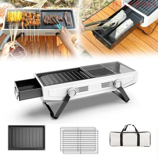【詳細設計】独立した引き出し式カーボン充填方式、折りたたみ収納、揚げ物とグリルの両用、高温耐性、ステンレス鋼グリ