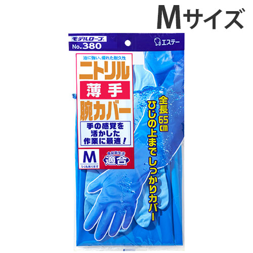 モデルローブ No.380 ニトリル薄手 腕カバー付 手袋 Mサイズ エステー