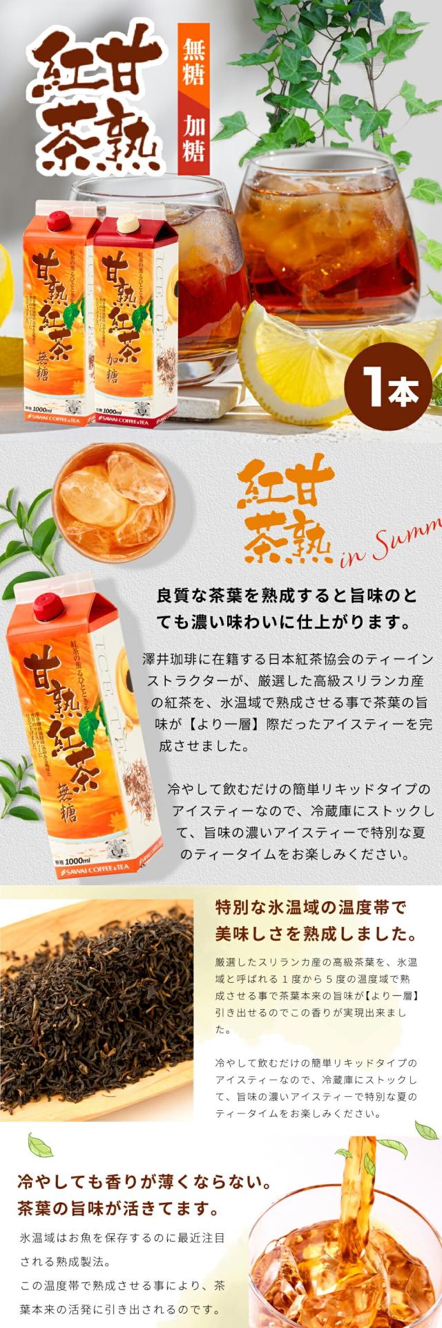 紅茶 アイスティー リキッド 1000ml 1本 無糖 加糖 紙パック 氷温 お試し 甘熟紅茶 澤井珈琲